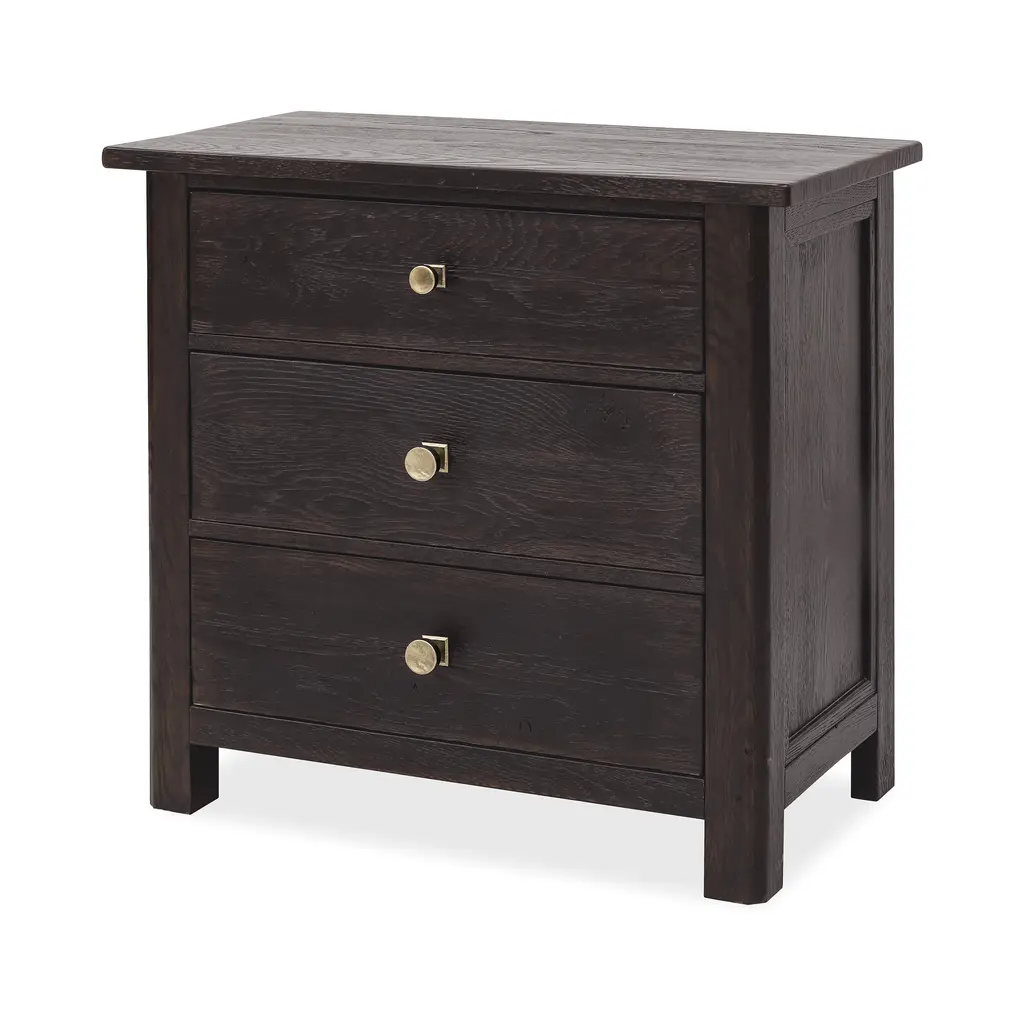 The perfect bedside companion, the Driftwood 3-Drawer Nightstand from Hooker Furniture blends rustic charm with modern convenience. Timeworn finish, this piece brings a warm, heritage feel to your bedroom. Three spacious drawers provide ample storage, with a cedar-lined bottom drawer for a touch of luxury. A thoughtfully integrated charging station with two outlets and USB ports, along with a cord clip, keeps your devices powered and your space tidy. Highlights: