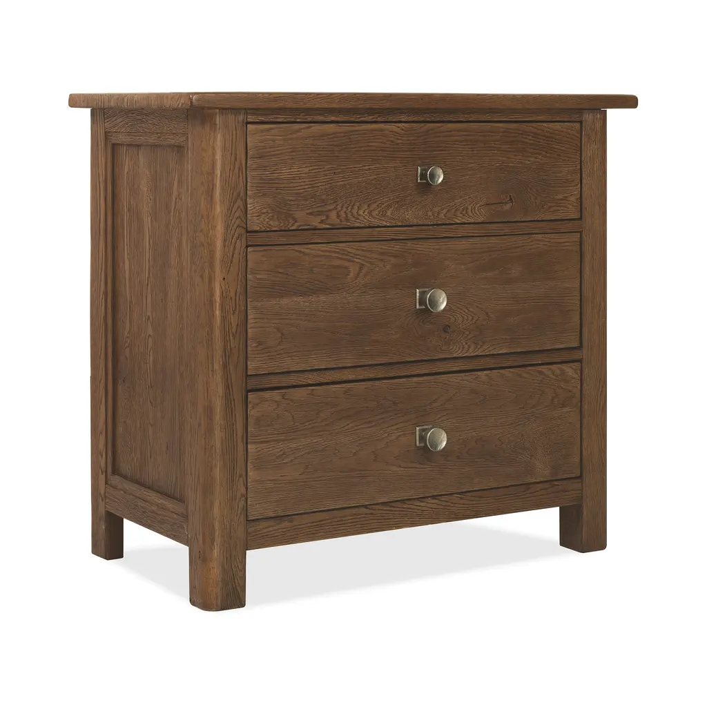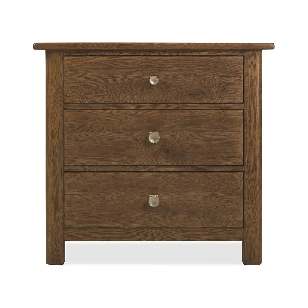 The perfect bedside companion, the Driftwood 3-Drawer Nightstand from Hooker Furniture blends rustic charm with modern convenience. Timeworn finish, this piece brings a warm, heritage feel to your bedroom. Three spacious drawers provide ample storage, with a cedar-lined bottom drawer for a touch of luxury. A thoughtfully integrated charging station with two outlets and USB ports, along with a cord clip, keeps your devices powered and your space tidy. Highlights: