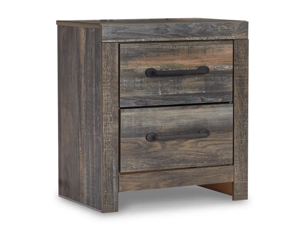 When merged in just the right way, rustic and industrial styles can make one happy marriage. Case in point: the Drystan nightstand. A refined take on barn board beauty, its complex, replicated wood grain showcases hints of burnt orange and teal tones for a sense of weatherworn authenticity. Elongated drawer pulls elevate the aesthetic. Inclusion of USB-C plug-ins is such a bright idea.