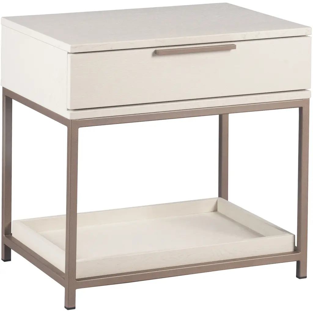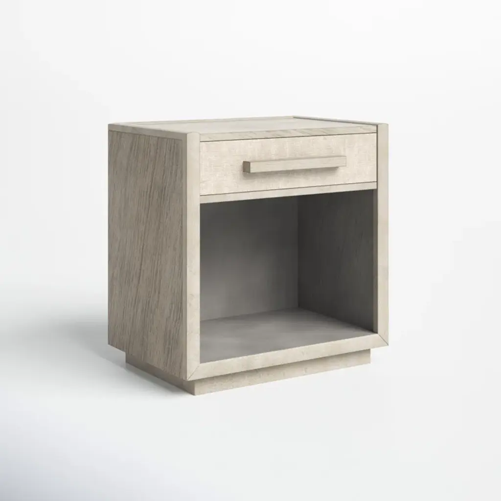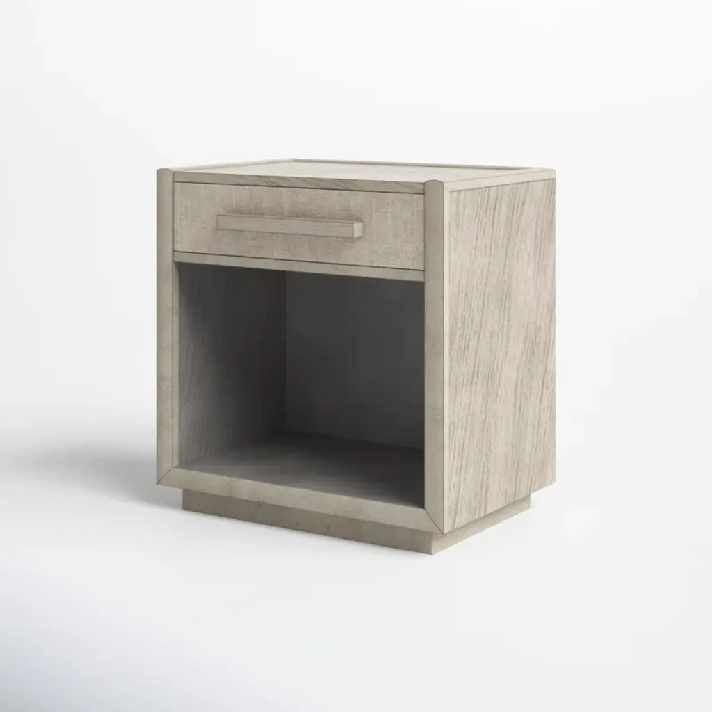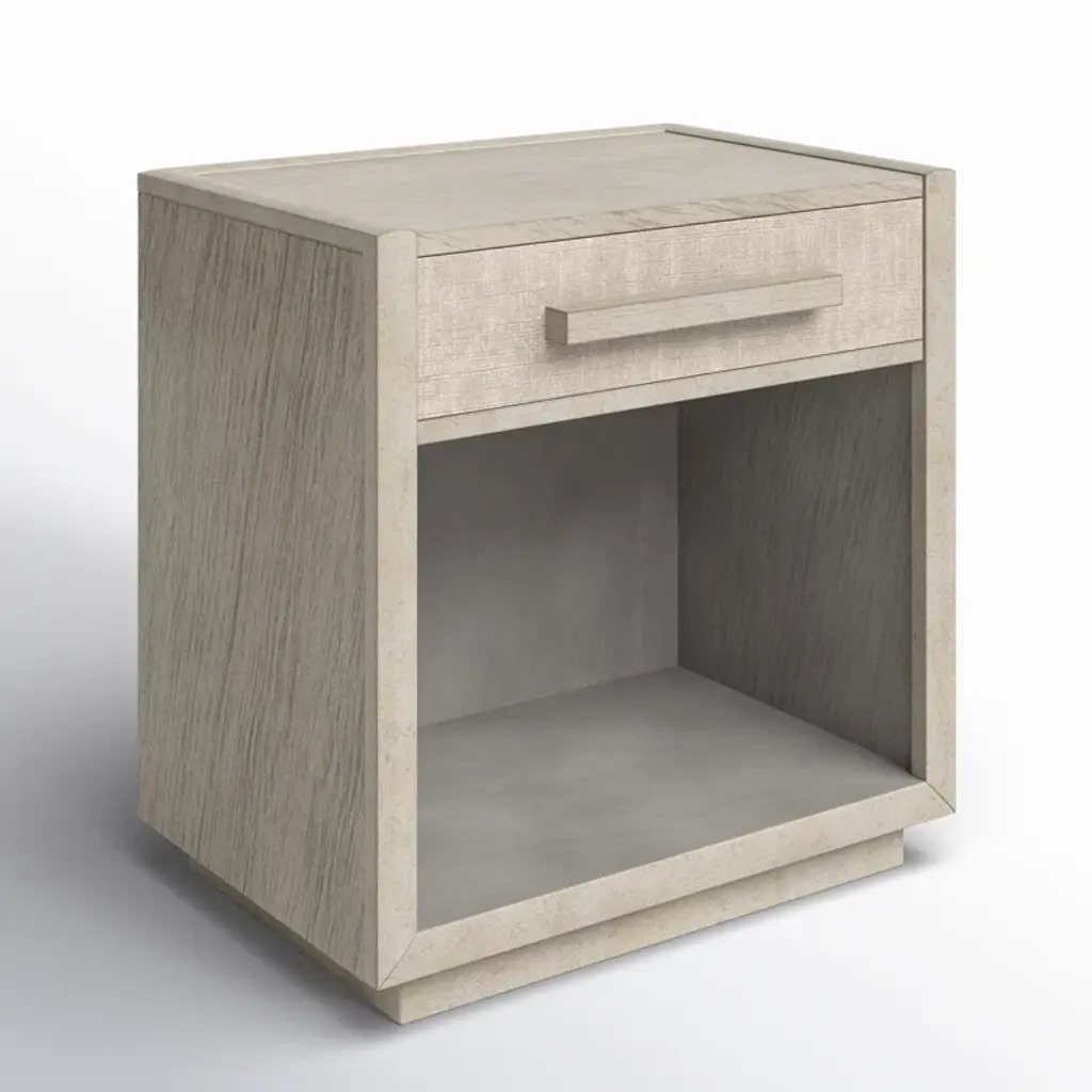 Small in size, big on style: This trending nightstand keeps all your bedside must-haves at arm's reach. It's crafted from solid wood in a beige finish that highlights the wood's grain, and it features a linen inlay on the front for a touch of texture. The single drawer offers out-of-sight storage for journals and charging cables, while the lower cubby is just right for displaying books and decor. Best of all, this piece arrives fully assembled, so you can mix and match it with your decor right away.