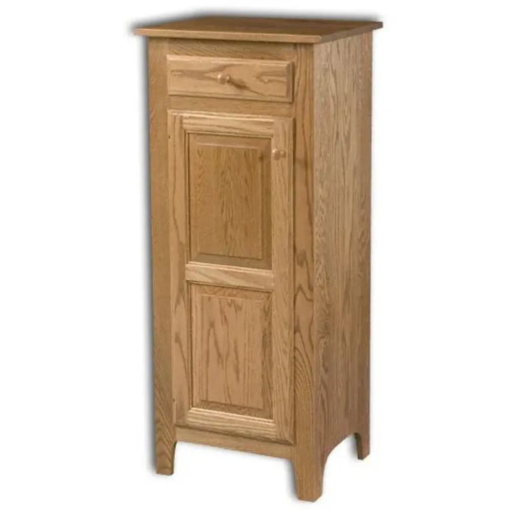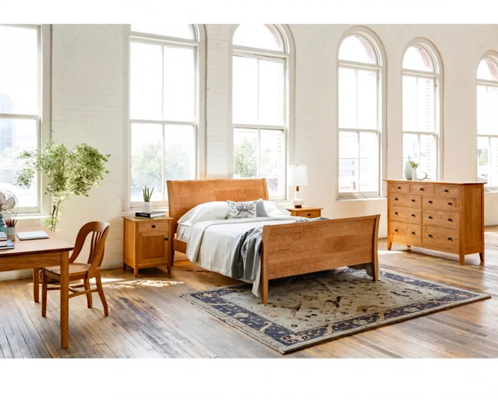 The Mission furniture movement emphasized craftsmanship and simplicity of form. The Joinery’s Dunning Nightstand, inspired by this movement, features a heavy overhang at the top with an elongated bevel, through finger joints on the top drawer, all stretchers and dividers exposed and squared off legs with an inside taper with a straight kick. The vertical door style is a raised frame and panel accentuating the simplified Mission look.
