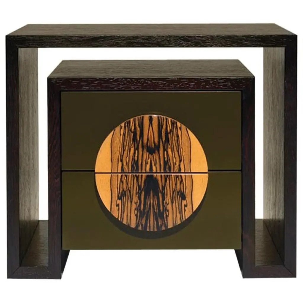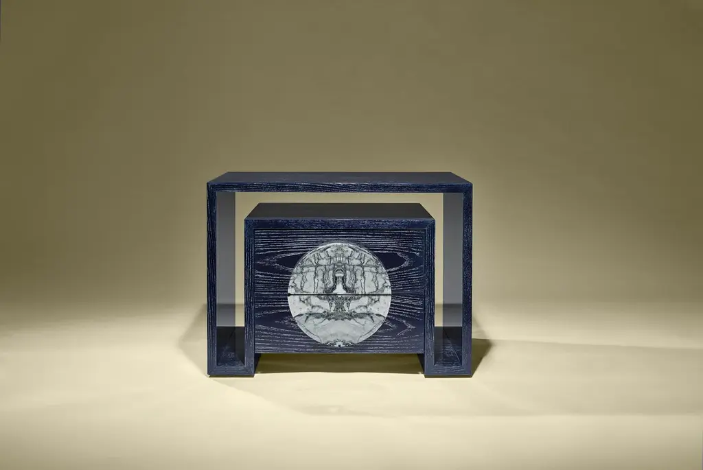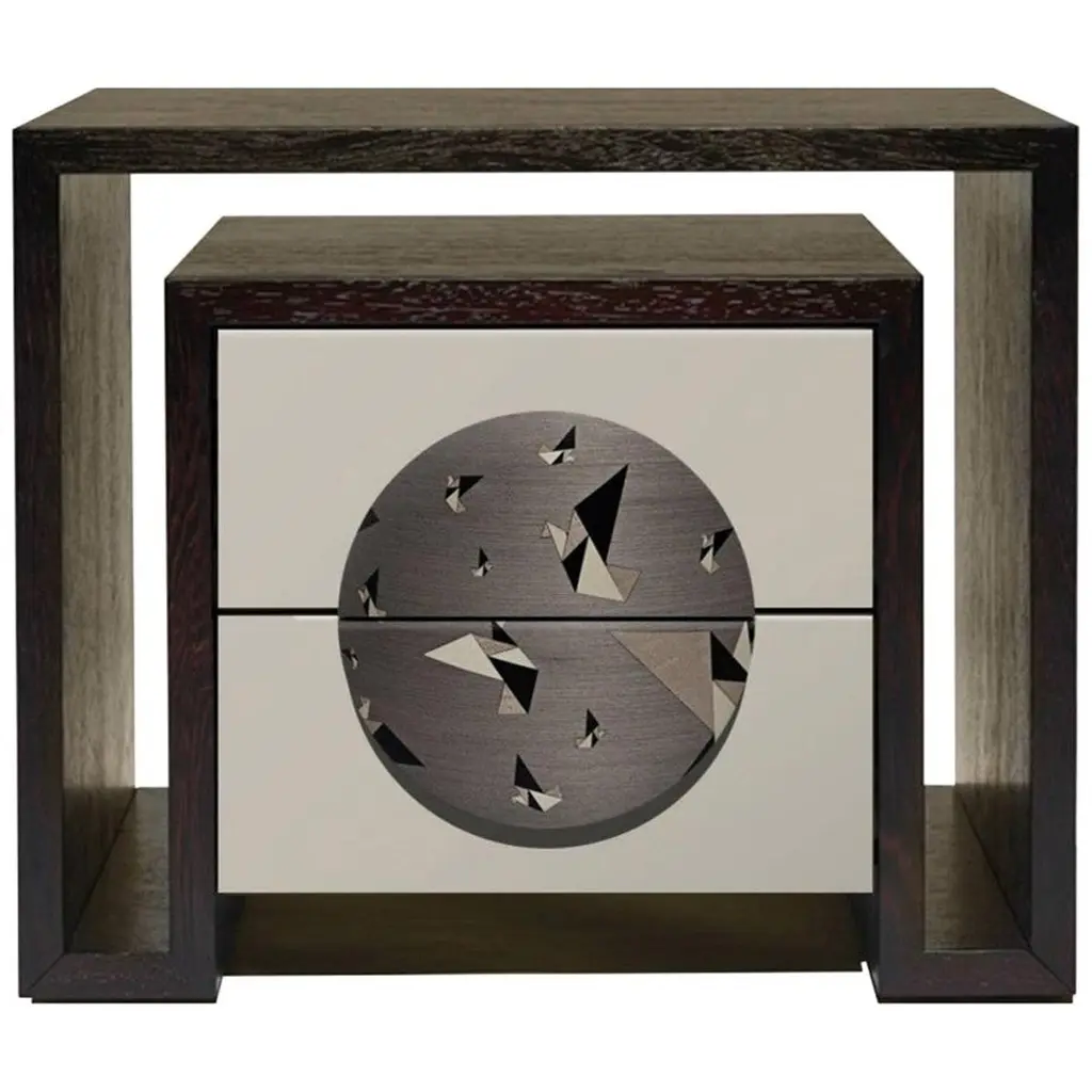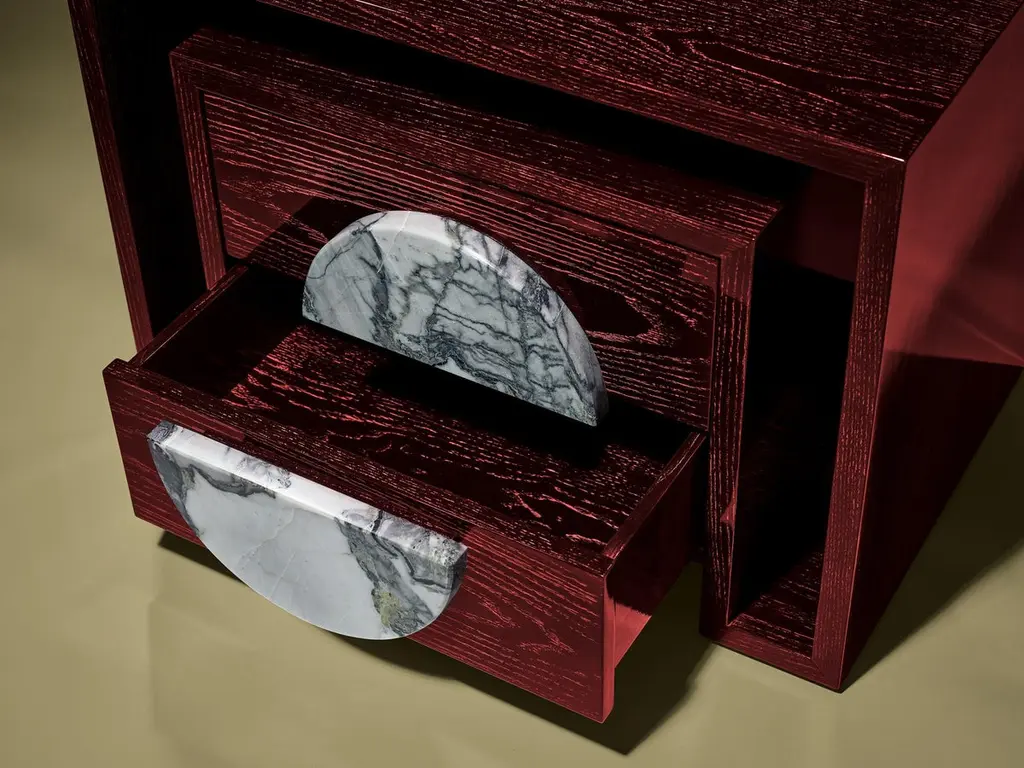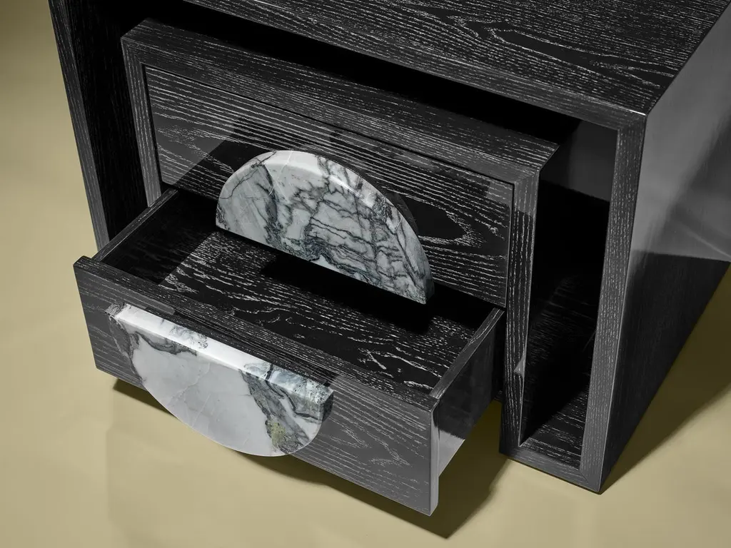 Bedside table in teinted ash with drawers and stone knobs.Bespoke / CustomizableIdentical shapes with different sizes and finishings.All RAL colors available. (Mate / Half Gloss / Gloss)