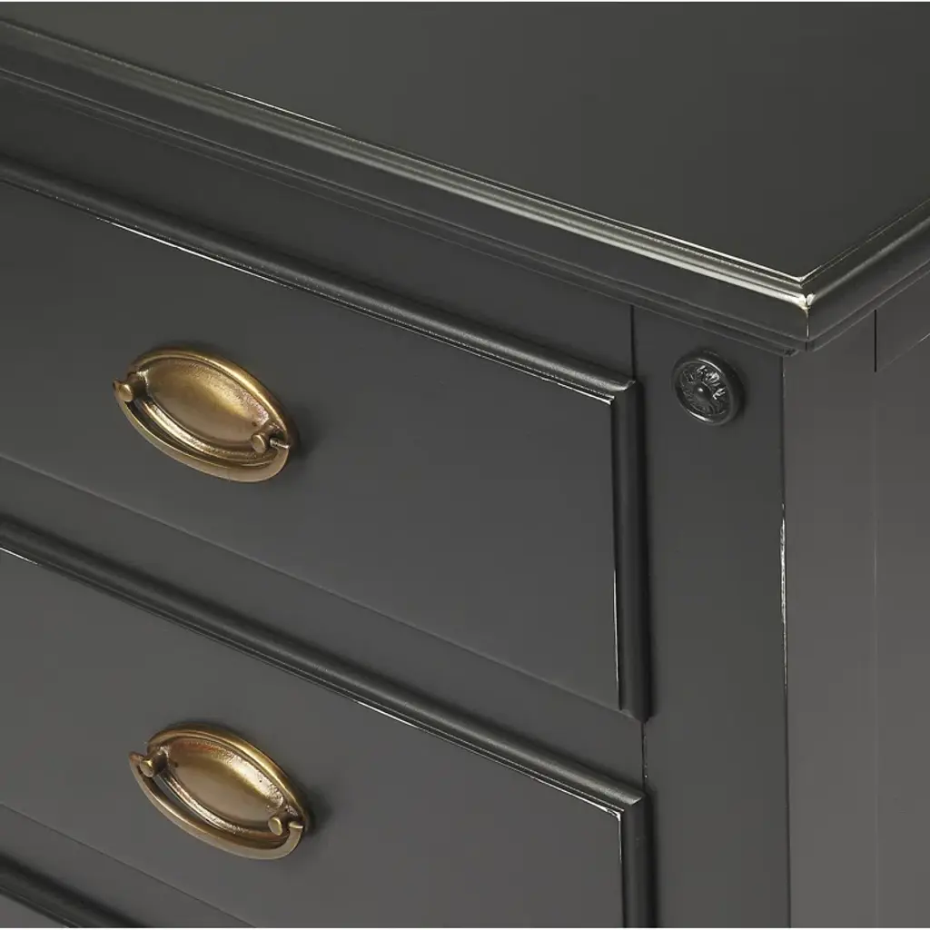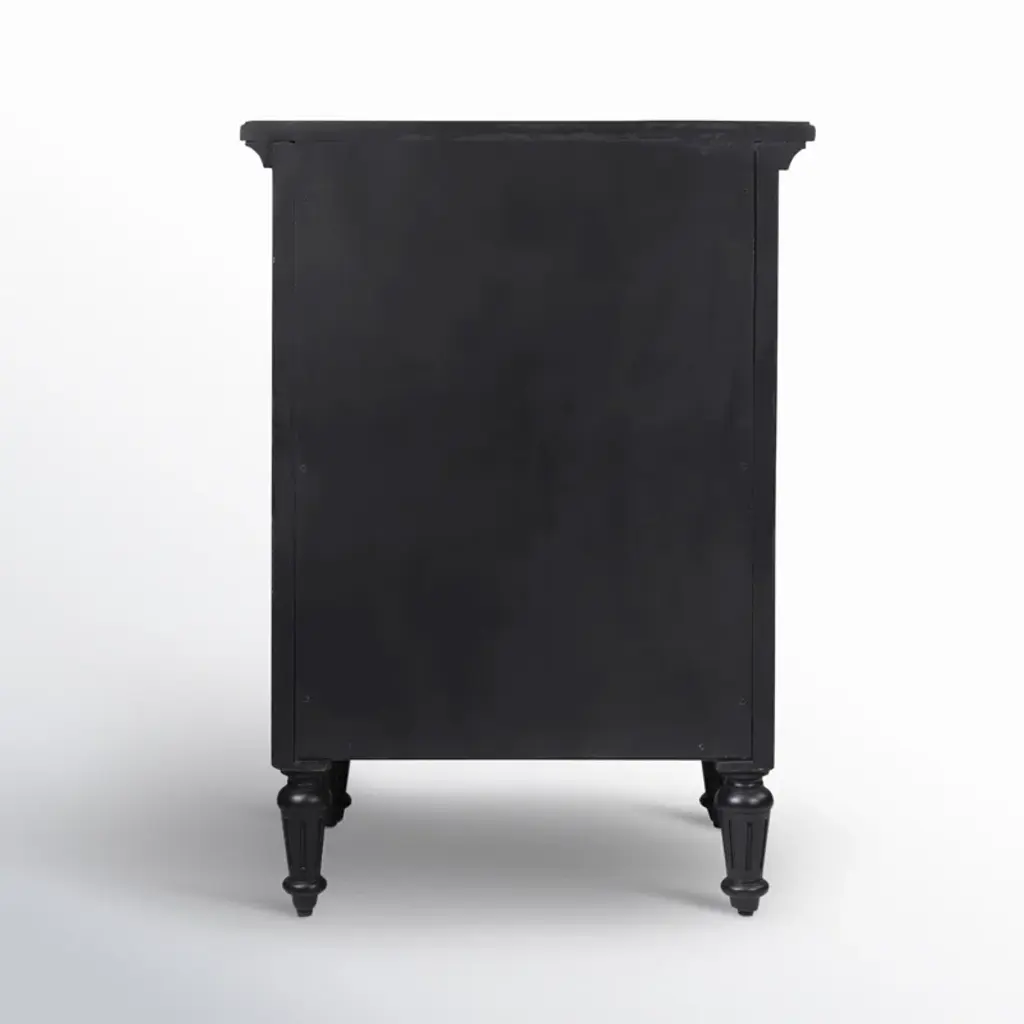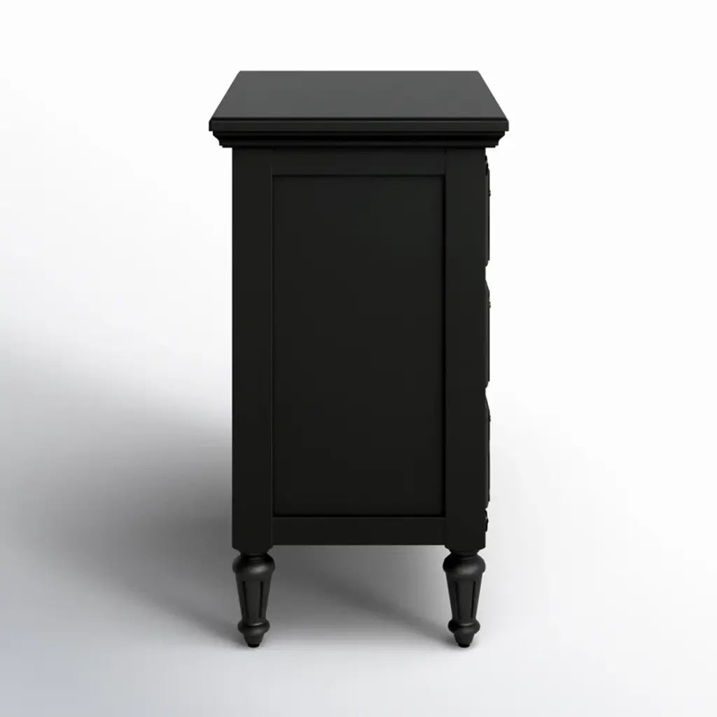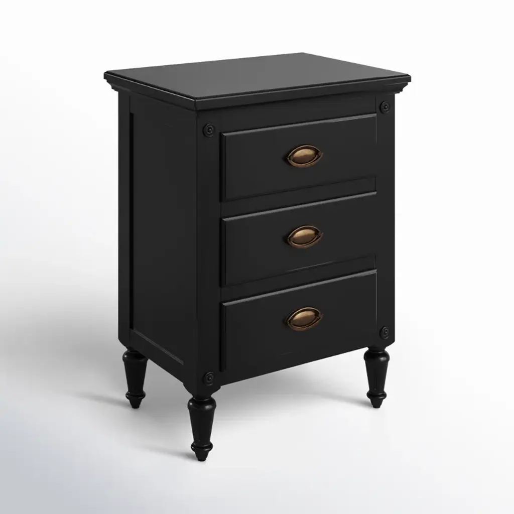 This wooden nightstand is so much more than a perch for reading lamps, glasses of water, and alarm clocks. It has intricately carved accents and turned legs that give it all the charm of a well-loved antique, plus it comes in multiple finishes so you can choose which one works best for your bedroom. Crafted from manufactured wood and mahogany veneers, it has three roomy drawers for tucking away bedside essentials, while its metallic pulls give it a touch of contrast and luster. Measuring a modest 21.5" wide, it's just right for living rooms or master suites that are a bit short on space. Why don't you buy two of these traditional nightstands and put them on either side of your bed for a fully furnished feel? Something to consider: When it needs a little freshening up, we recommend cleaning it with a dry cloth.