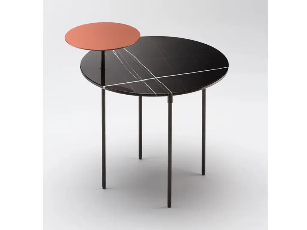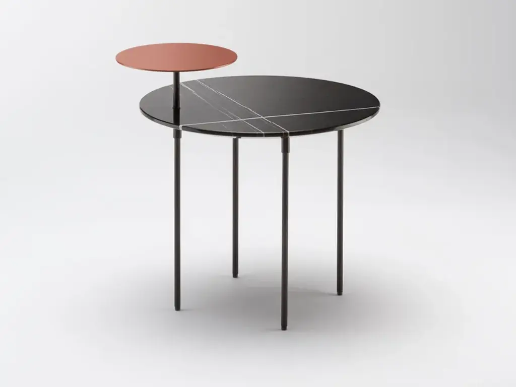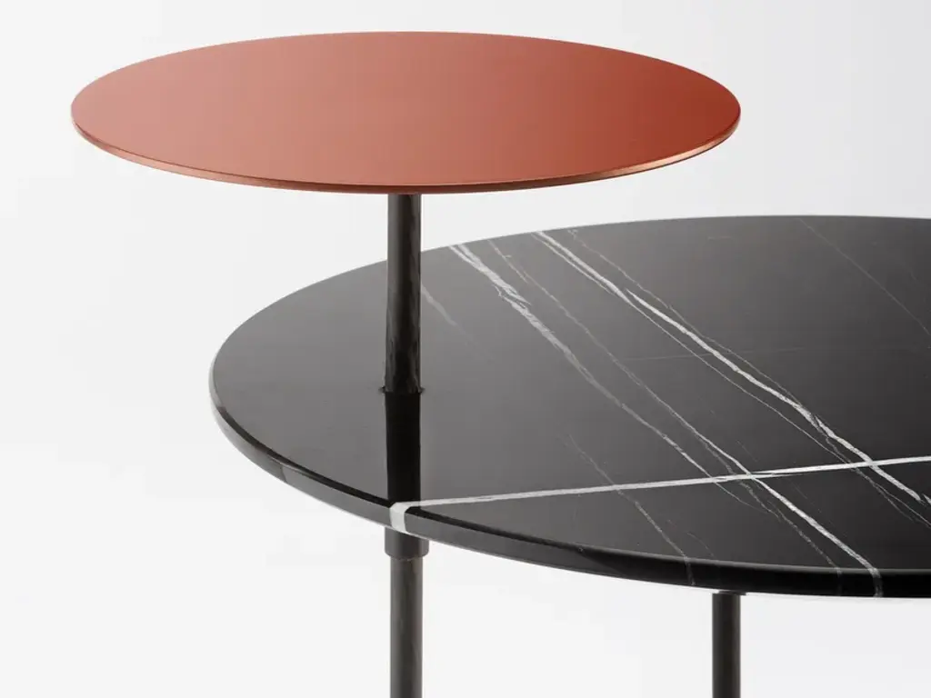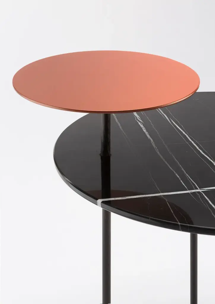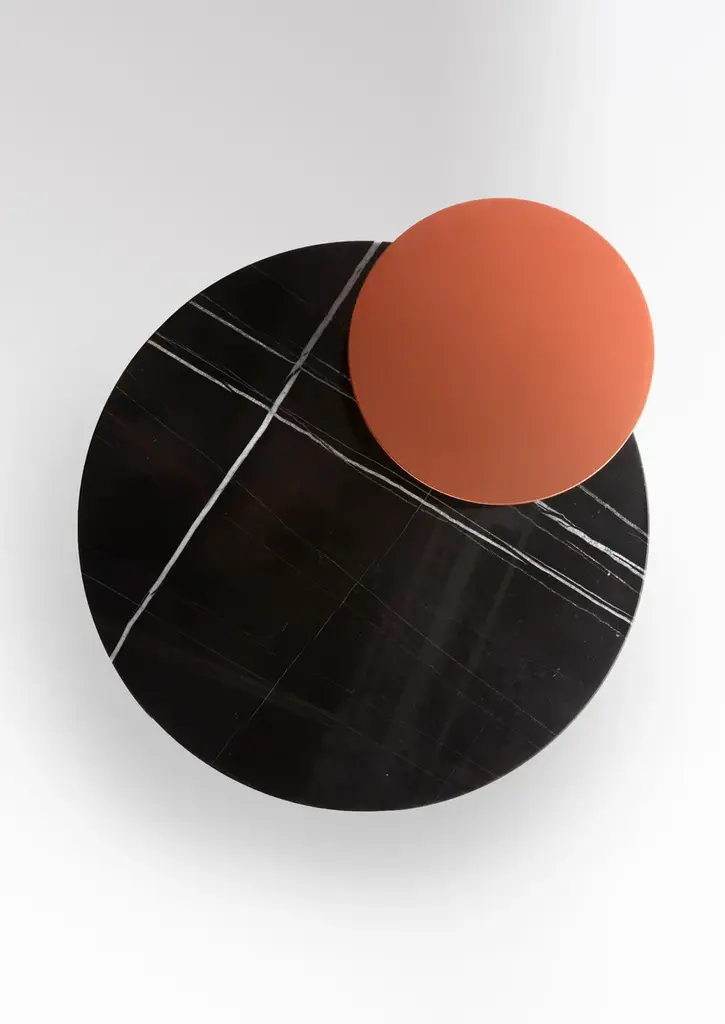 The Eclipse bedside table puts sobriety at the service of refinement. Made with a carbon fibre base and a round top in Sahara marble. In addition to the precious marble top, Eclipse is equipped with a small metal shelf painted Terracotta color that creates contrast with the top below, while emphasizing its beauty.The first BELULL collection, designed by Emmanuel Gallina , combines elegance, timelessness and simplicity. Inspired by the Médoc landscape, this range uses carbon combined with other noble materials to create modern and unique furniture.