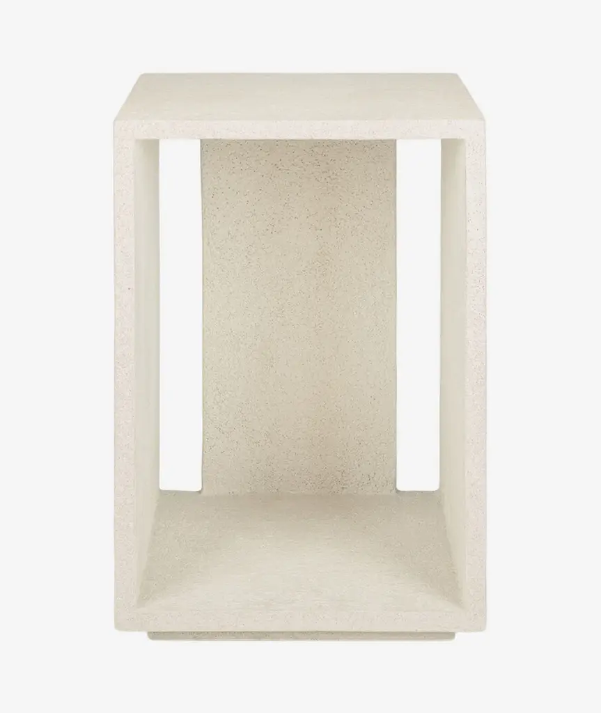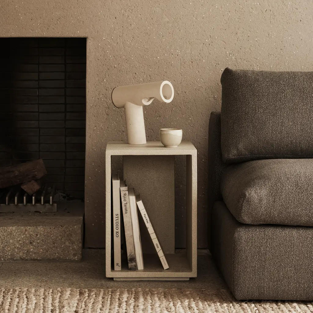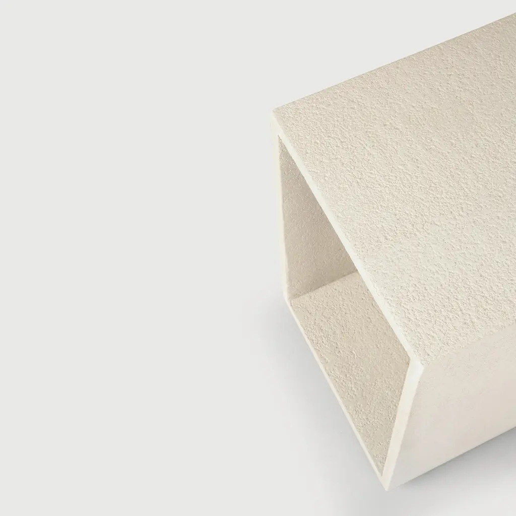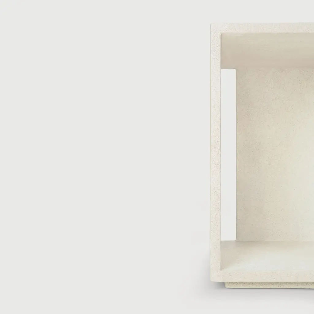 Sculptural and understated, the Elements concrete nightstand adds quiet character to the bedroom. Designed by Ethnicraft, it’s made from lightweight microcement in a soft white tone, offering the look of poured concrete with a smoother, more refined texture. The rounded, stacked form has a grounded feel—both minimal and substantial at once. Unlike traditional concrete, microcement is more versatile and less porous, making this piece ideal for daily use. Each one is hand-finished by artisans, giving it subtle tonal variations that highlight the material’s natural depth. Whether styled next to a bed or used as a compact side table, this concrete nightstand is a durable and design-forward choice for modern interiors.