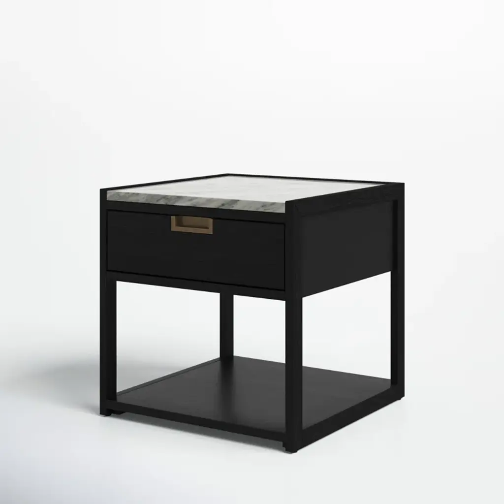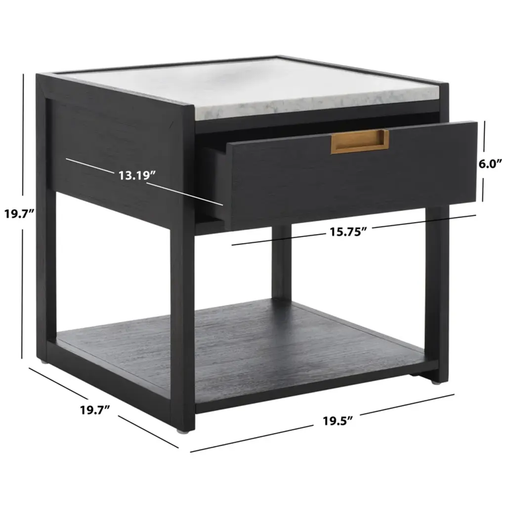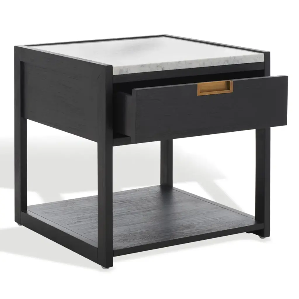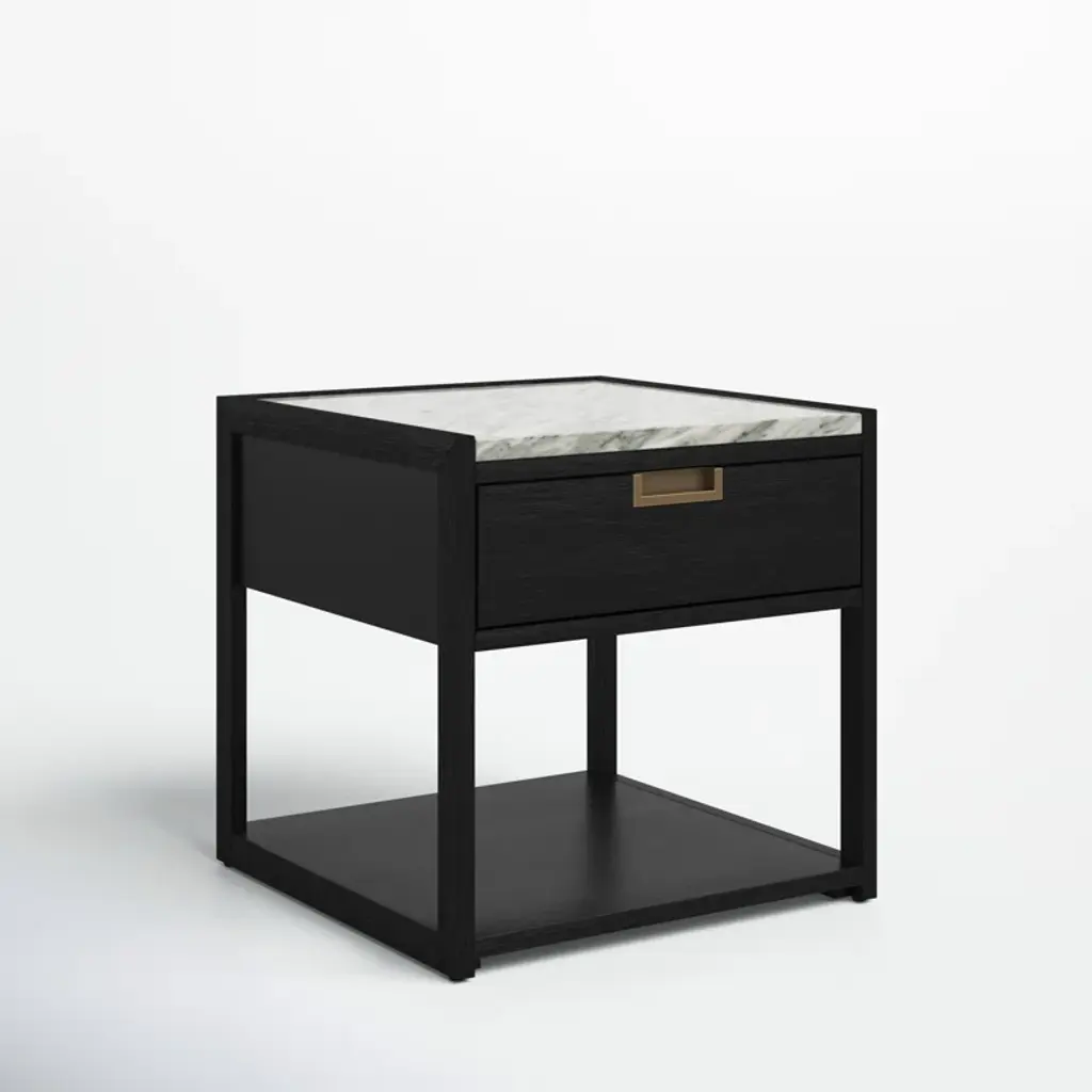 Get the look and feel of a 5-star suite every night as you fall asleep next to this distinguished nightstand. Made from solid and engineered wood with a dark chocolate finish, it has an authentic white marble top and antique brass metal handles. Its single soft-close drawers provide out-of-sight storage for nighttime essentials, plus a lower shelf for extra storage or even a small display. And, with a narrow height and width just below 20”, it’s easily at-home in small spaces or next to shorter beds.