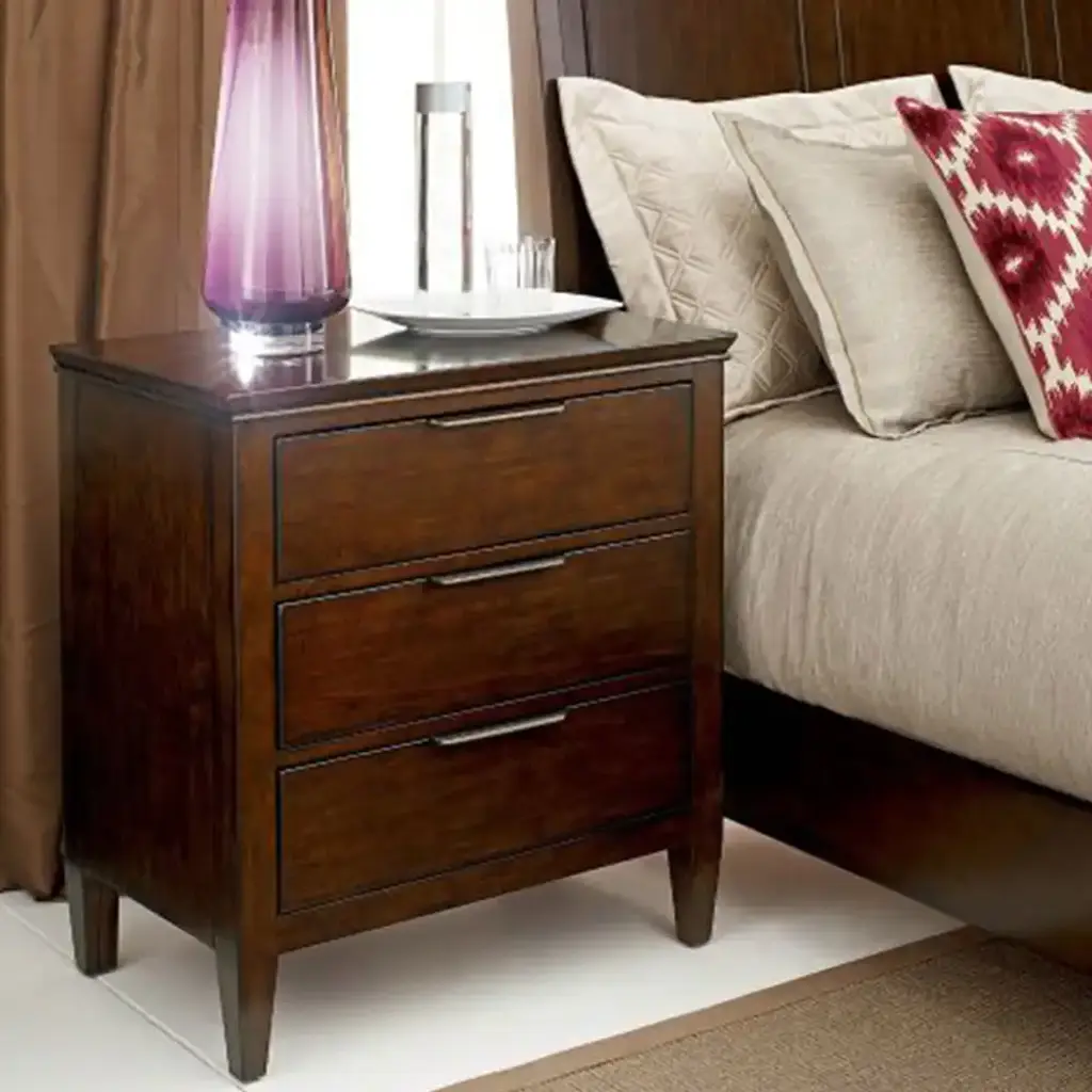 Discover the perfect blend of functionality and elegance with the Elise Night Stand from our Elise Collection. Crafted from genuine solid Alder and select hardwoods, this exquisite piece boasts three spacious drawers for ample storage, a convenient built-in nightlight for soft illumination, and a discreet electric outlet to keep your devices charged and within reach. The adjustable levelers ensure stability on any surface, while the timeless design complements a variety of bedroom aesthetics. Whether you're reaching for a late-night read or your morning alarm, the Elise Night Stand stands ready to serve, combining practicality with refined craftsmanship to enhance your nightly routine and elevate your bedroom's ambiance.