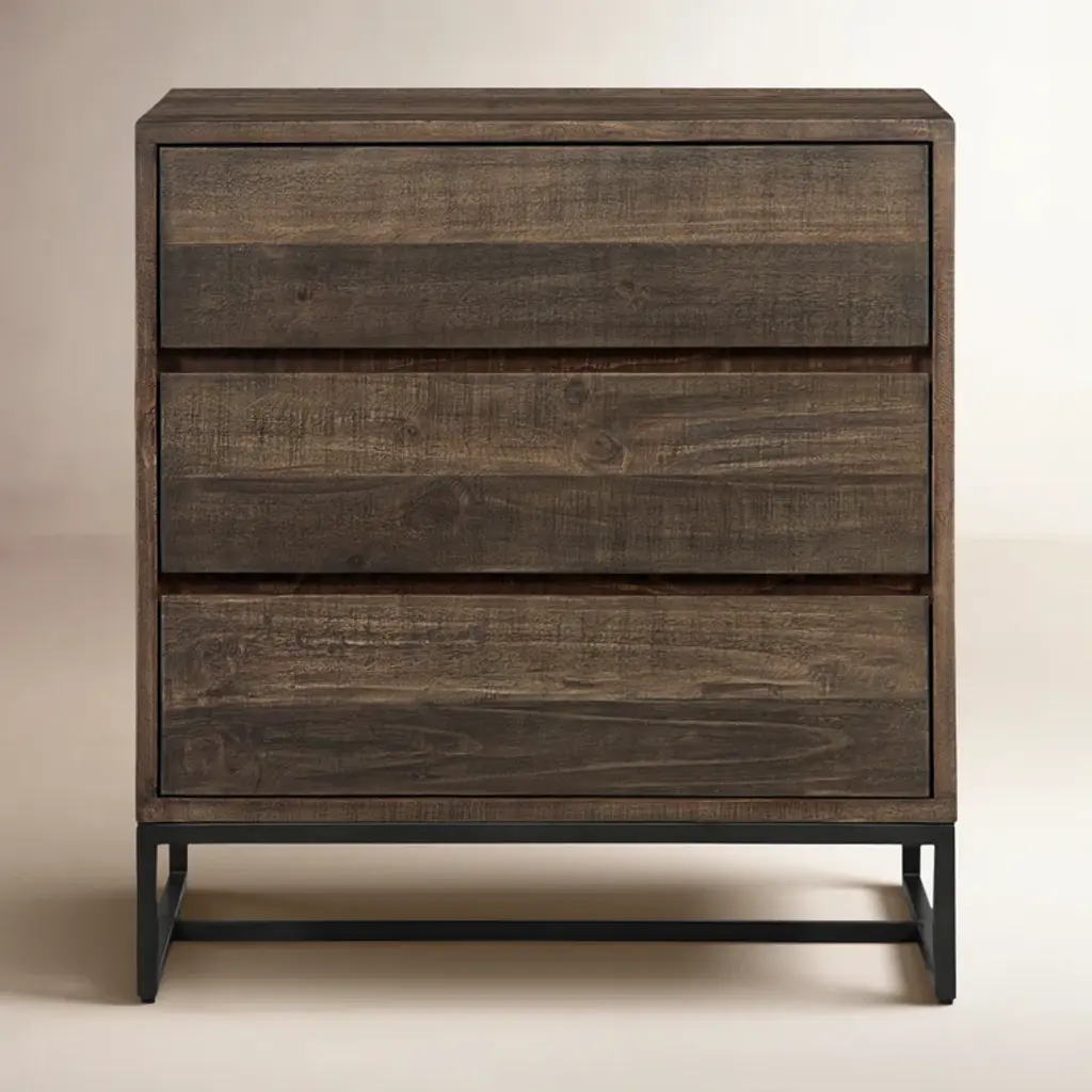 Emsley Reclaimed Pine 3-Drawer Nightstand