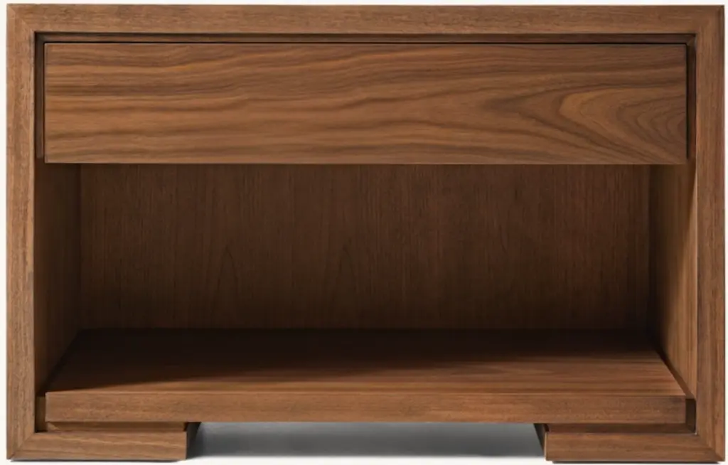 Enzo, designed by London- and Los Angeles-based Alexander Purcell, is handcrafted of American walnut. Planes meet at right angles and enfold each other in a dynamic embrace. A slim reveal between the outer and inner frame elements creates a compelling play of shadow, defining the silhouette.SHOP THE ENTIRE COLLECTION