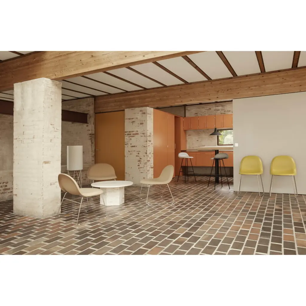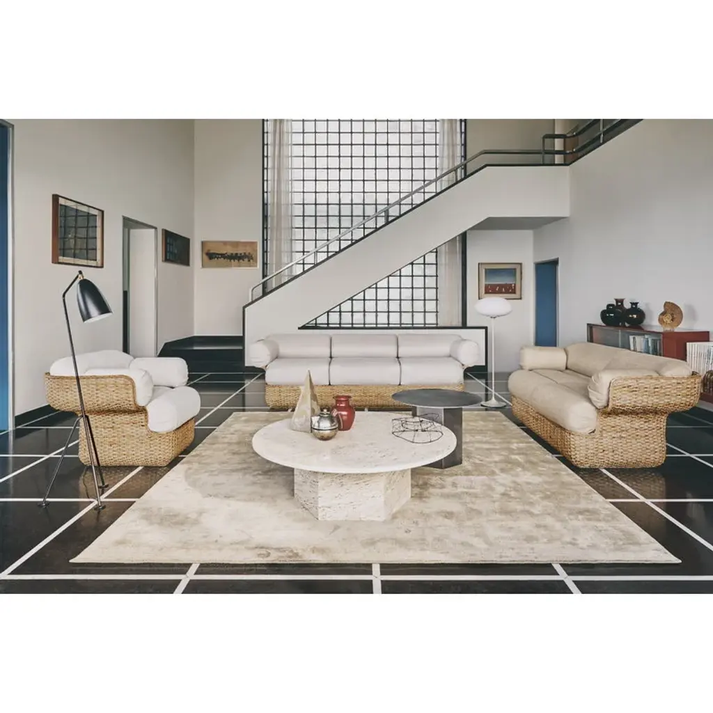 The Epic coffee table, designed by GamFratesi for GUBI, is a refreshingly contemporary take on classic architectural elements. The sculptural, seemingly simple look of the Epic coffee table comprises two geometric elements: a hexagon and a circle. The table’s modern, minimalist tone carries a subtle reference to the iconic columns of Ancient Greece. Choose a large Epic table as the focal point of a living room, a smaller size to accompany a lounger chair or as an eloquent nightstand, or combine different sizes and colors to create an eye-catching ensemble. Epic by GUBI is a collection of distinctive tables crafted in either beautiful travertine stone or simple steel, designed by the Danish-Italian design duo GamFratesi: Stine Gam and Enrico Fratesi. The designers drew inspiration to the series from the historical travertine constructions such as the Roman Colosseum. The grand Epic tables also lend their name from epic poems. The fascinating, individual personality of each stone makes every table unique, continuously adding new chapters to the table’s story with patina. The Epic collection features coffee tables in several sizes, and a dining table, all manufactured in Italy.