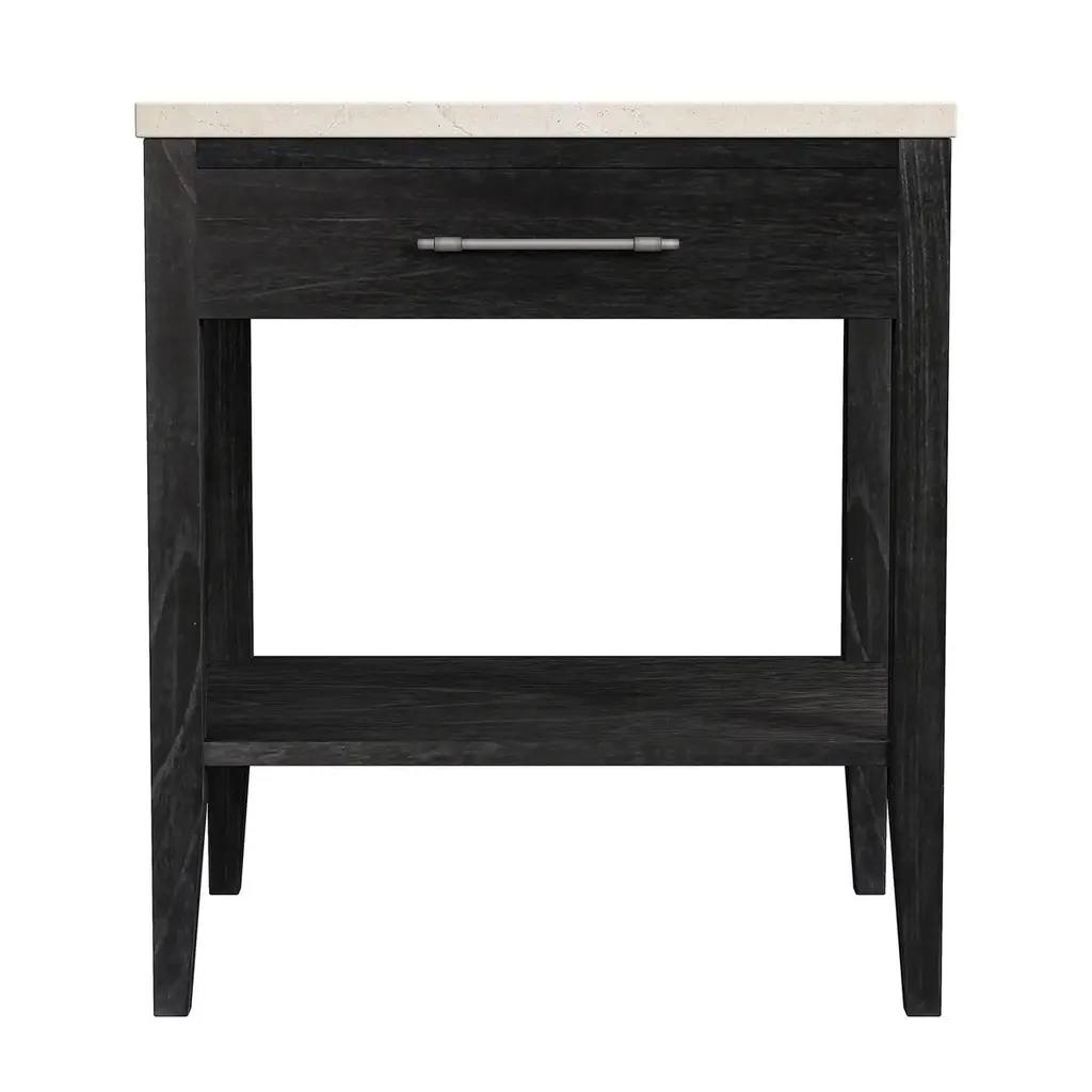 Transform your bedroom with the Ethan 1-Drawer Nightstand. Expertly crafted, it highlights Indonesia's Ujung Pangang marble, seamlessly uniting elegance and practicality. This nightstand offers the perfect amount of storage and is adorned with refined antique hardware.