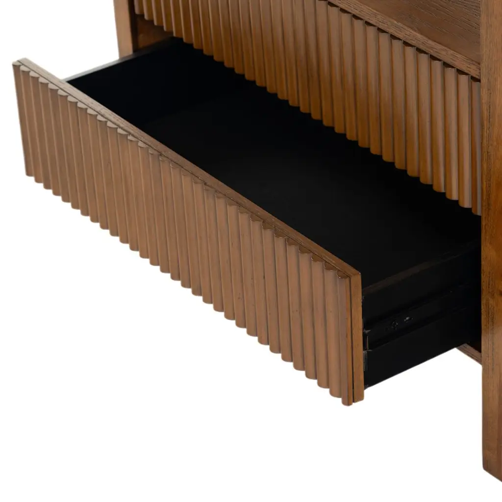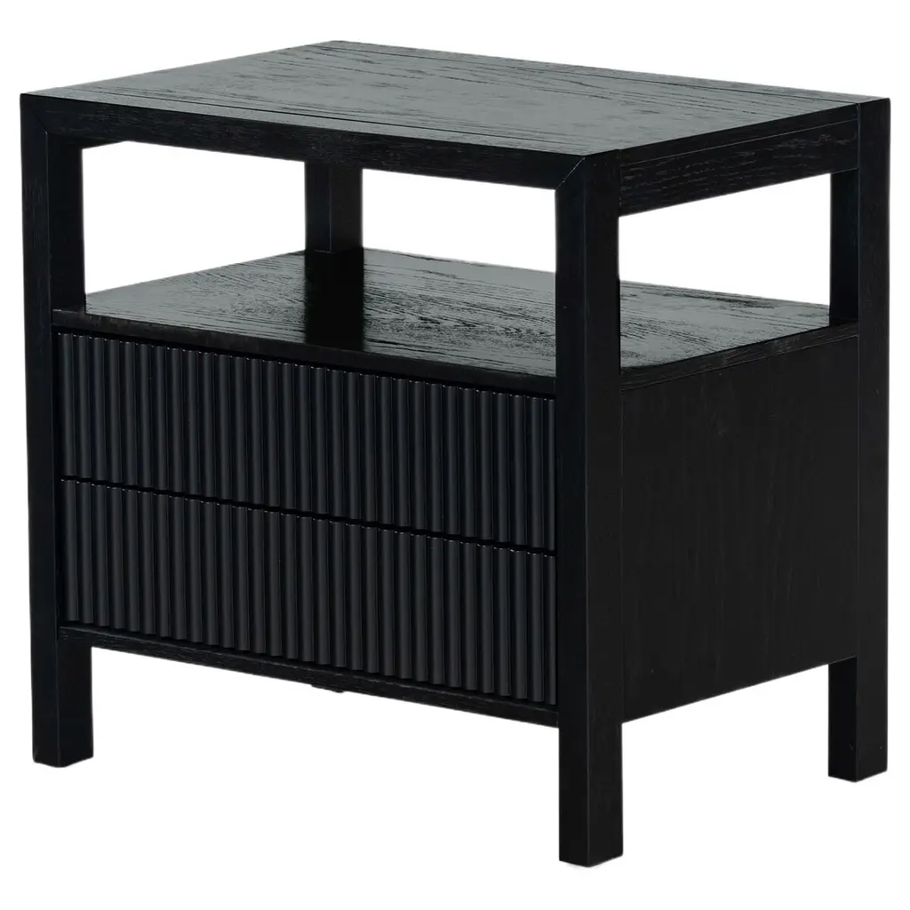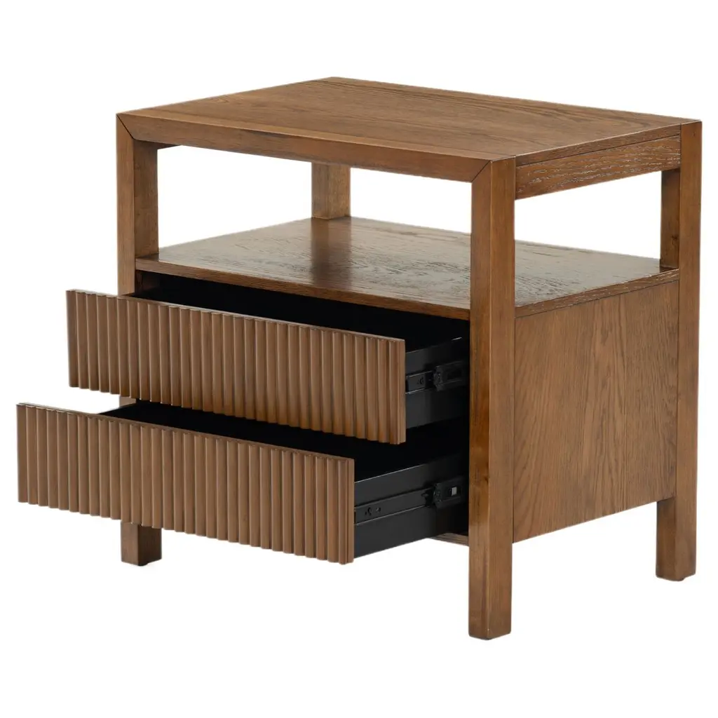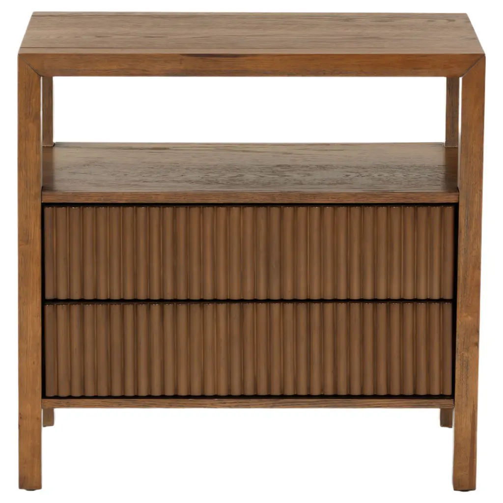 Transform your bedroom with the stunning Evarett 2 Drawer Reeded Nightstand. This elegant piece blends timeless charm with modern functionality. Crafted from quality wood, it features reeded drawer fronts made from durable polyester resin, creating a captivating texture that complements any decor. With two spacious drawers, it offers ample storage for your bedside essentials, helping you keep your space organized and clutter-free. Whether placed by your bed or used as an accent piece, the Evarett Nightstand is designed to seamlessly blend with your home interior. Elevate your bedroom aesthetics with this stylish and functional furniture piece and enjoy the perfect fusion of design and utility.