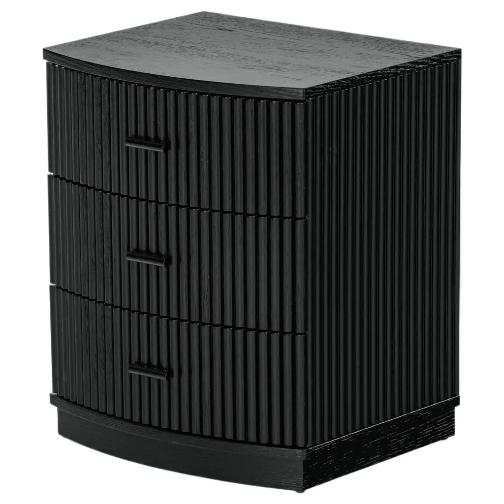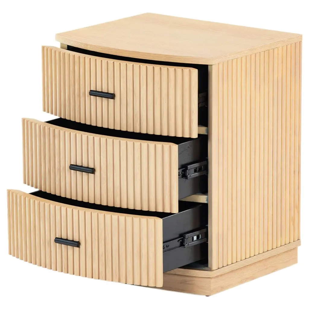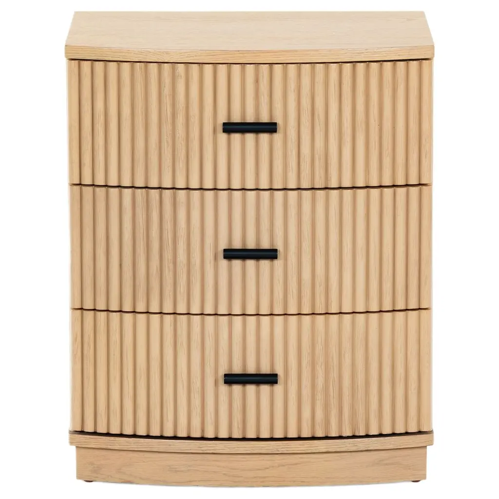 Discover the elegance of the Evarett 3 Drawer Reeded Nightstand, where design meets functionality. This piece brings a touch of sophistication to any space with its sleek silhouette and reeded drawer fronts, artfully crafted with polyester resin, providing a unique tactile experience. The solid wood construction ensures stable support, while metal accents add a modern flair that complements both classic and contemporary interiors. The three spacious drawers provide ample storage for your bedside essentials, allowing you to keep your space neat and organized. Transform your bedroom with this elegant piece that brings a tasteful harmony of materials and design into your living space.