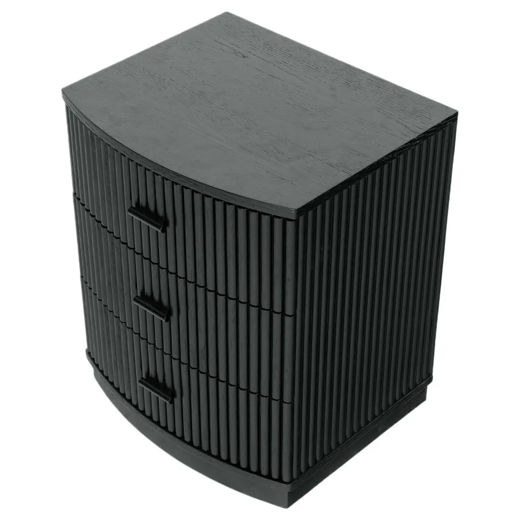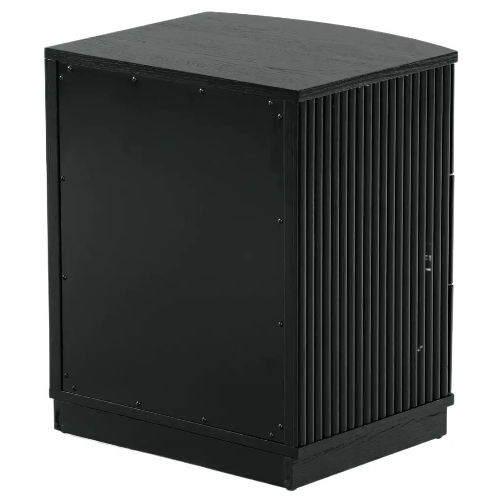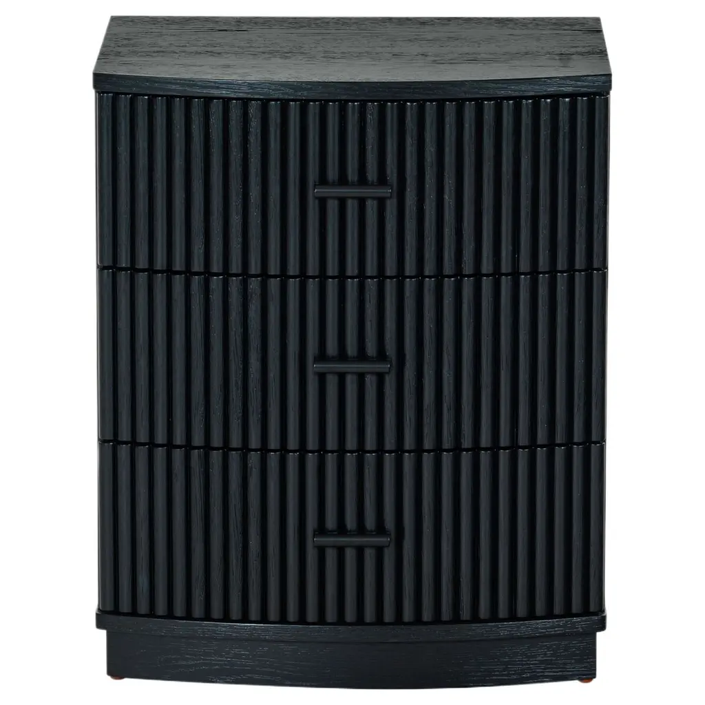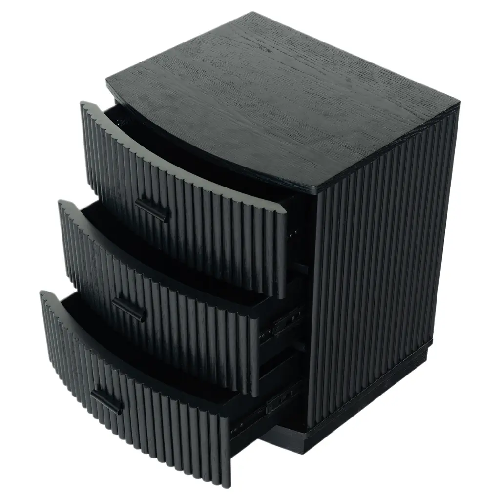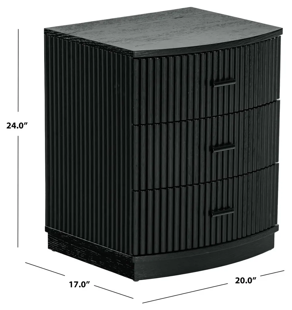 Discover the elegance of the Evarett 3 Drawer Reeded Nightstand, where design meets functionality. This piece brings a touch of sophistication to any space with its sleek silhouette and reeded drawer fronts, artfully crafted with polyester resin, providing a unique tactile experience. The solid wood construction ensures stable support, while metal accents add a modern flair that complements both classic and contemporary interiors. The three spacious drawers provide ample storage for your bedside essentials, allowing you to keep your space neat and organized. Transform your bedroom with this elegant piece that brings a tasteful harmony of materials and design into your living space.