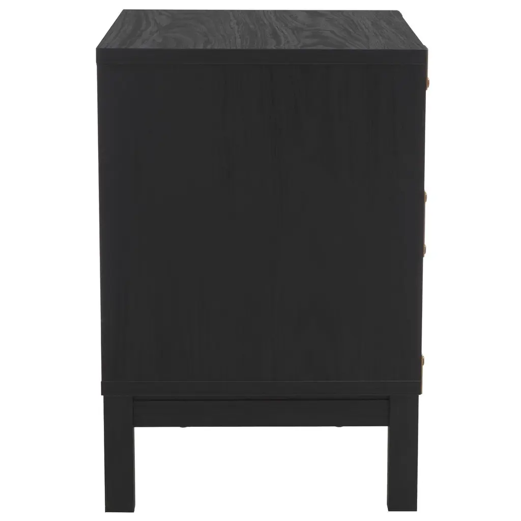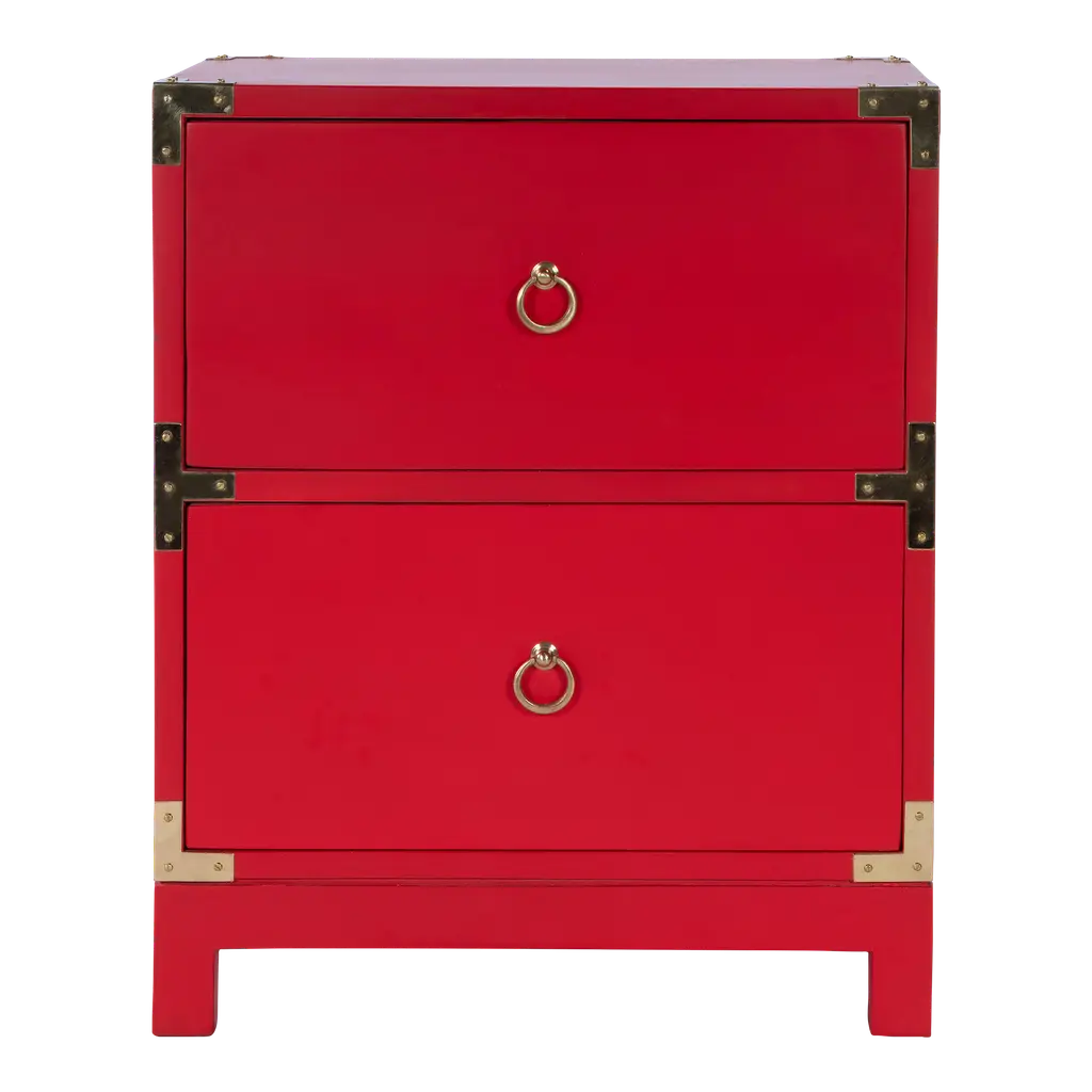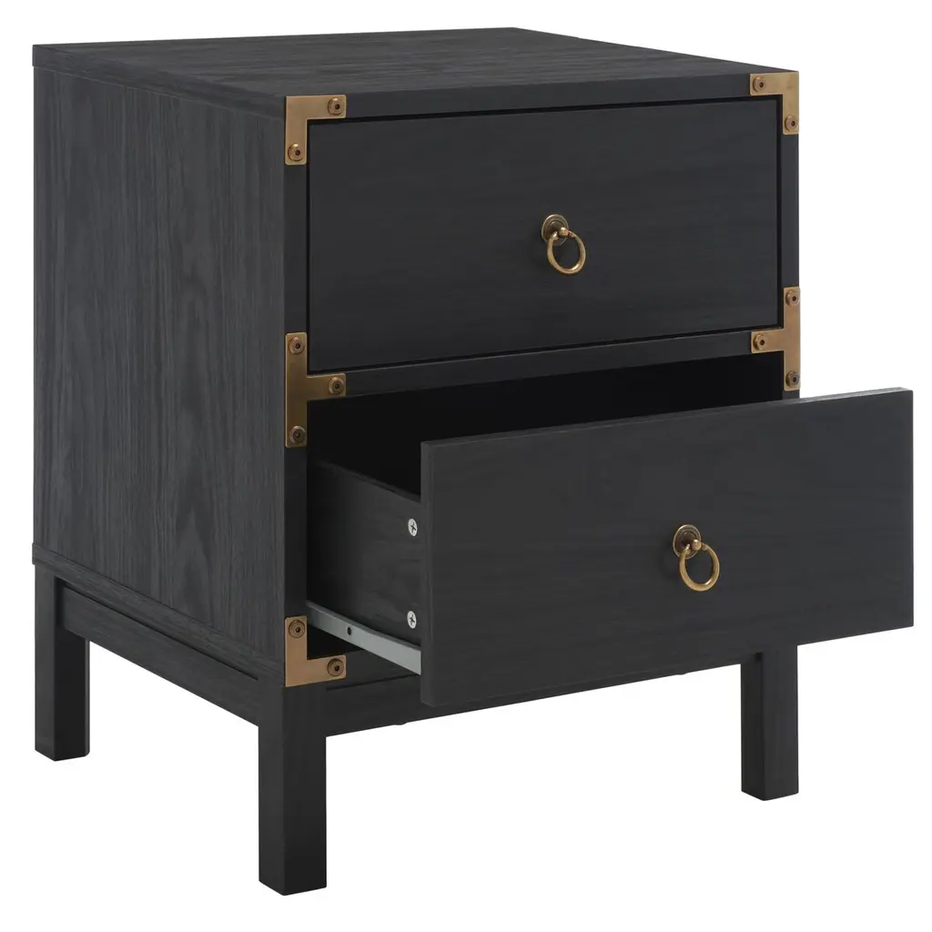 Embrace a classy, elegant, and versatile addition to your bedside with our Evarus Nightstand. Thoughtfully streamlined, the crisp and clean lines of our nightstand boast timeless aesthetics. It is gracefully perched to enliven your bedroom. Being inspired by the effortless beauty of vintage style, our nightstand is finished off with ring pulls and gold hardware on the edges. An elegant and timeless addition, the nightstand features two drawers to store and organize all your essentials.
