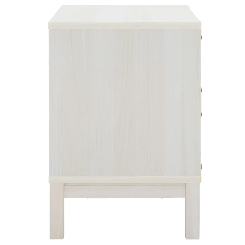 Embrace a classy, elegant, and versatile addition to your bedside with our Evarus Nightstand. Thoughtfully streamlined, the crisp and clean lines of our nightstand boast timeless aesthetics. It is gracefully perched to enliven your bedroom. Being inspired by the effortless beauty of vintage style, our nightstand is finished off with ring pulls and gold hardware on the edges. An elegant and timeless addition, the nightstand features two drawers to store and organize all your essentials.