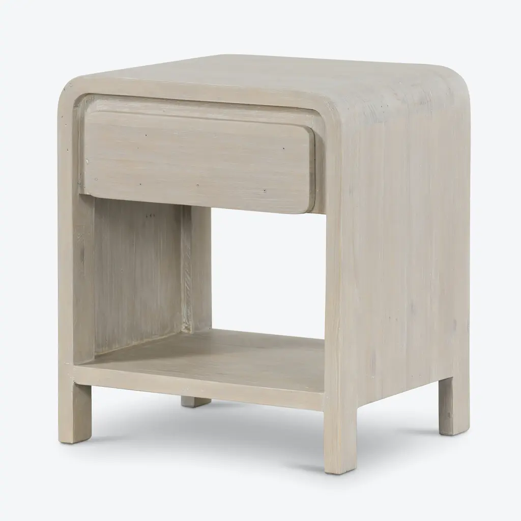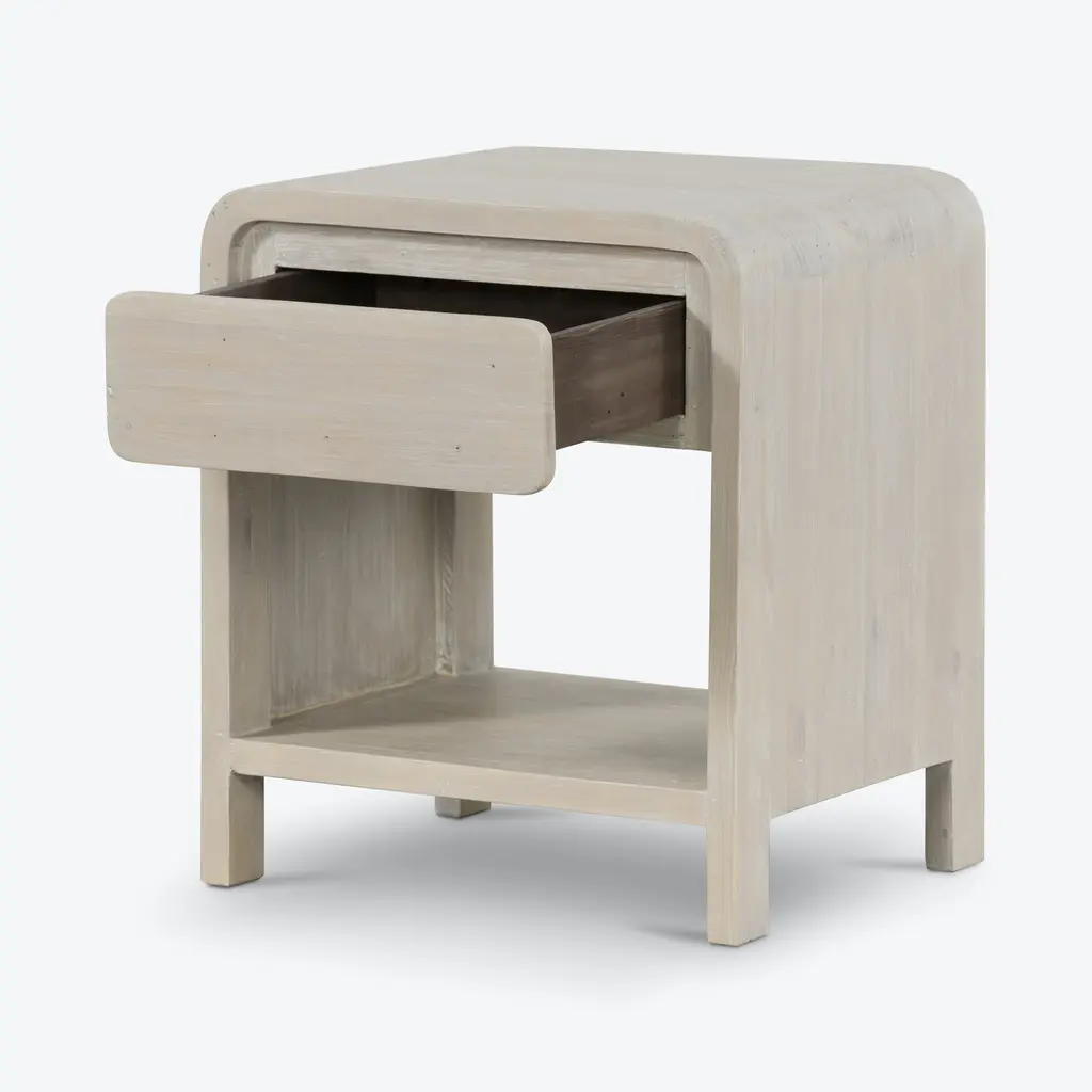 Keep all your bedside essentials close at hand with the Everson Nightstand, crafted with mixed reclaimed woods in a light wash, for a piece that not only looks good, but does the planet good too!With its curved frame, the Everson brings a touch of organic softness to the bedroom. Perfect for boho and modern lovers alike, this effortlessly chic nightstand offers open lower shelving and a spacious drawer for all your storage needs. Details and product care +DimensionsMeasure for deliveryOverall20.5"w x 17"d x 24"hDrawer14"w x 14"d x 3"dLeg4"h