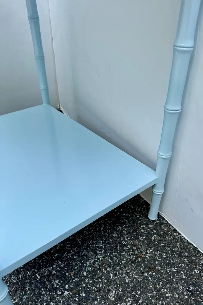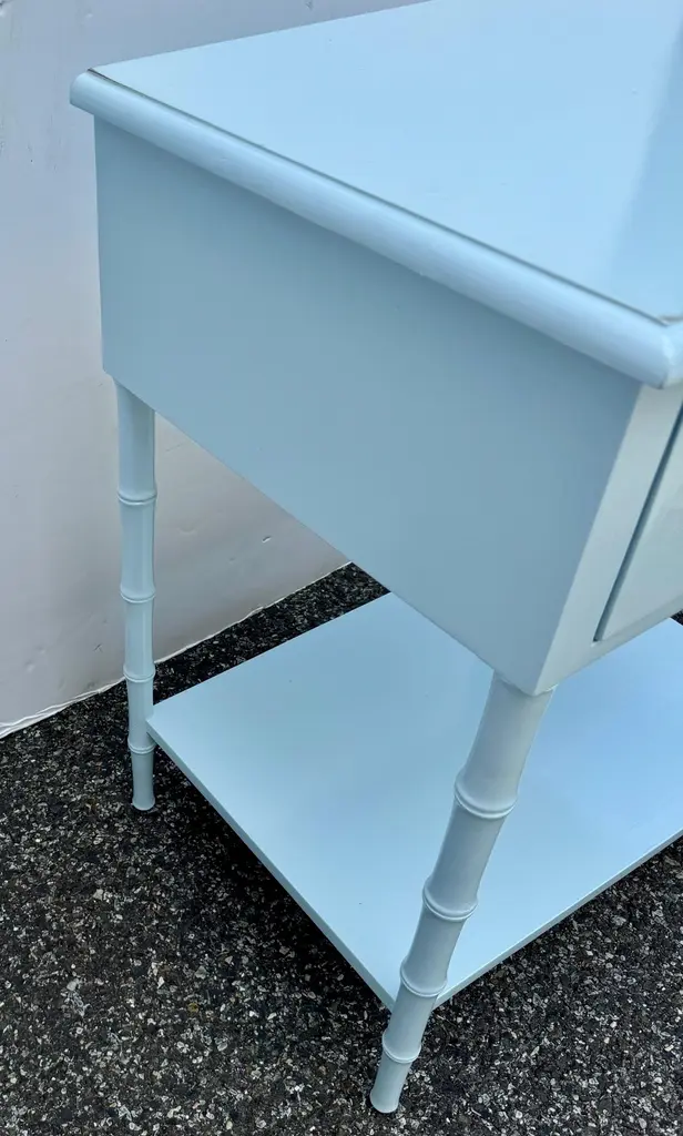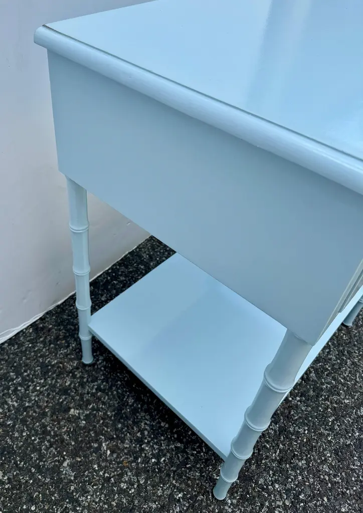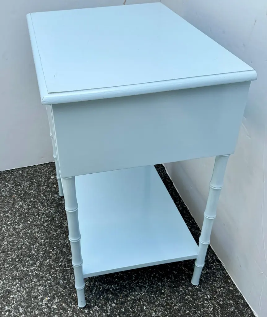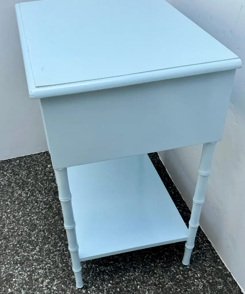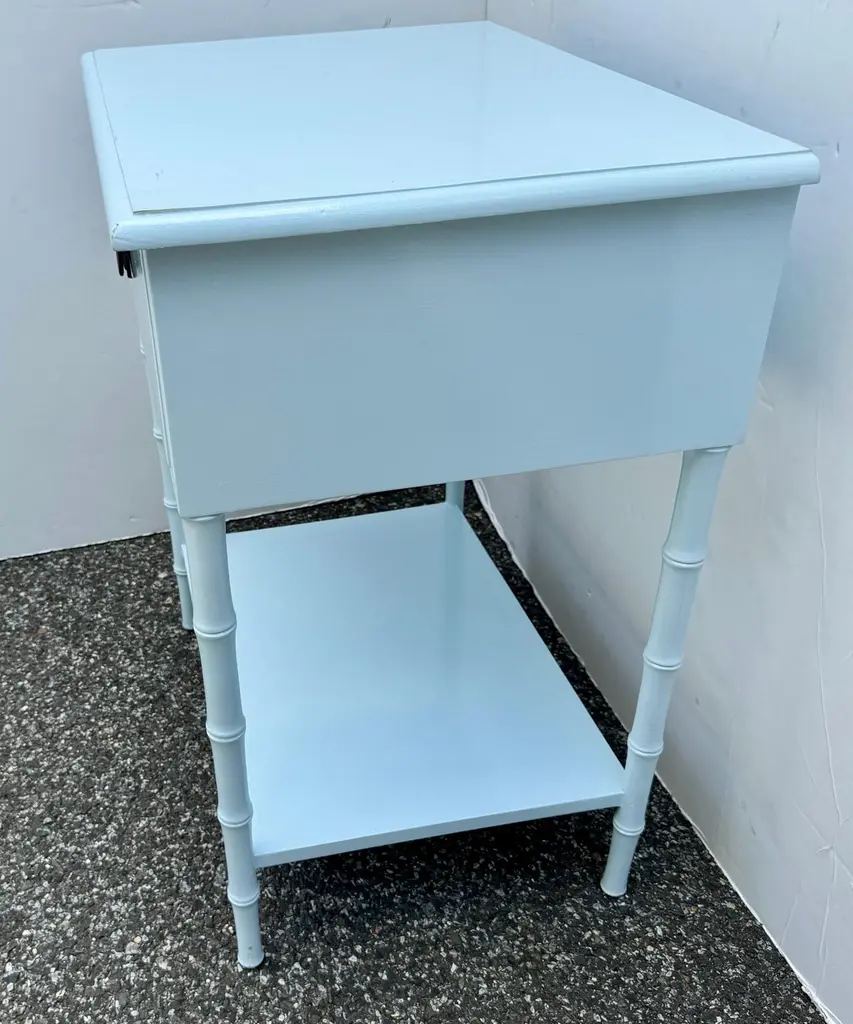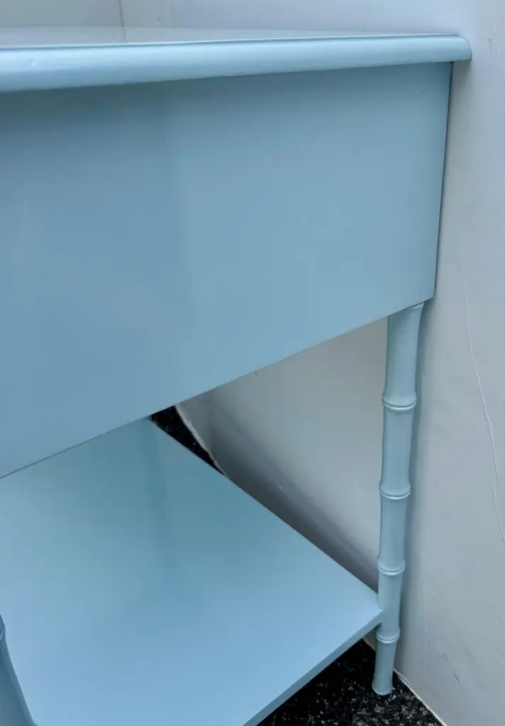 Faux Bamboo Side Bedside Table In Lacquer Painted Blue Finish
