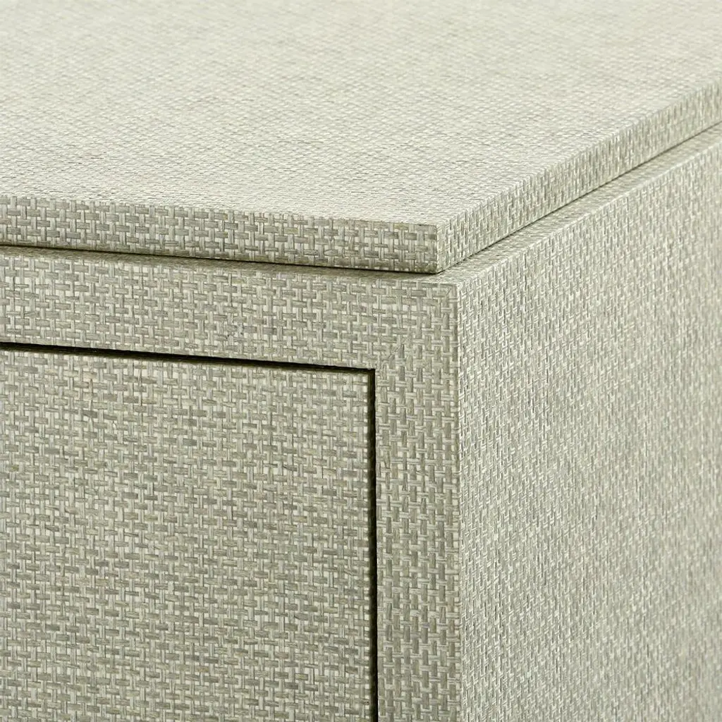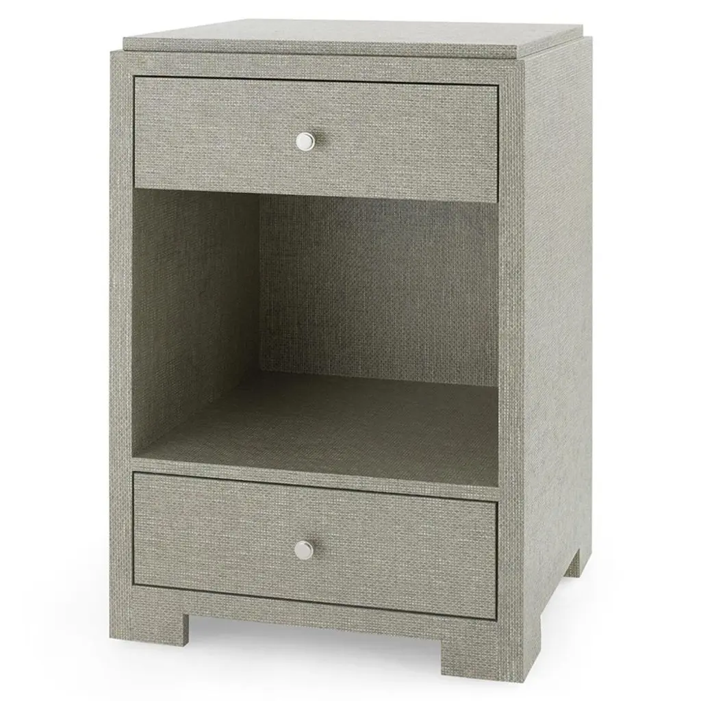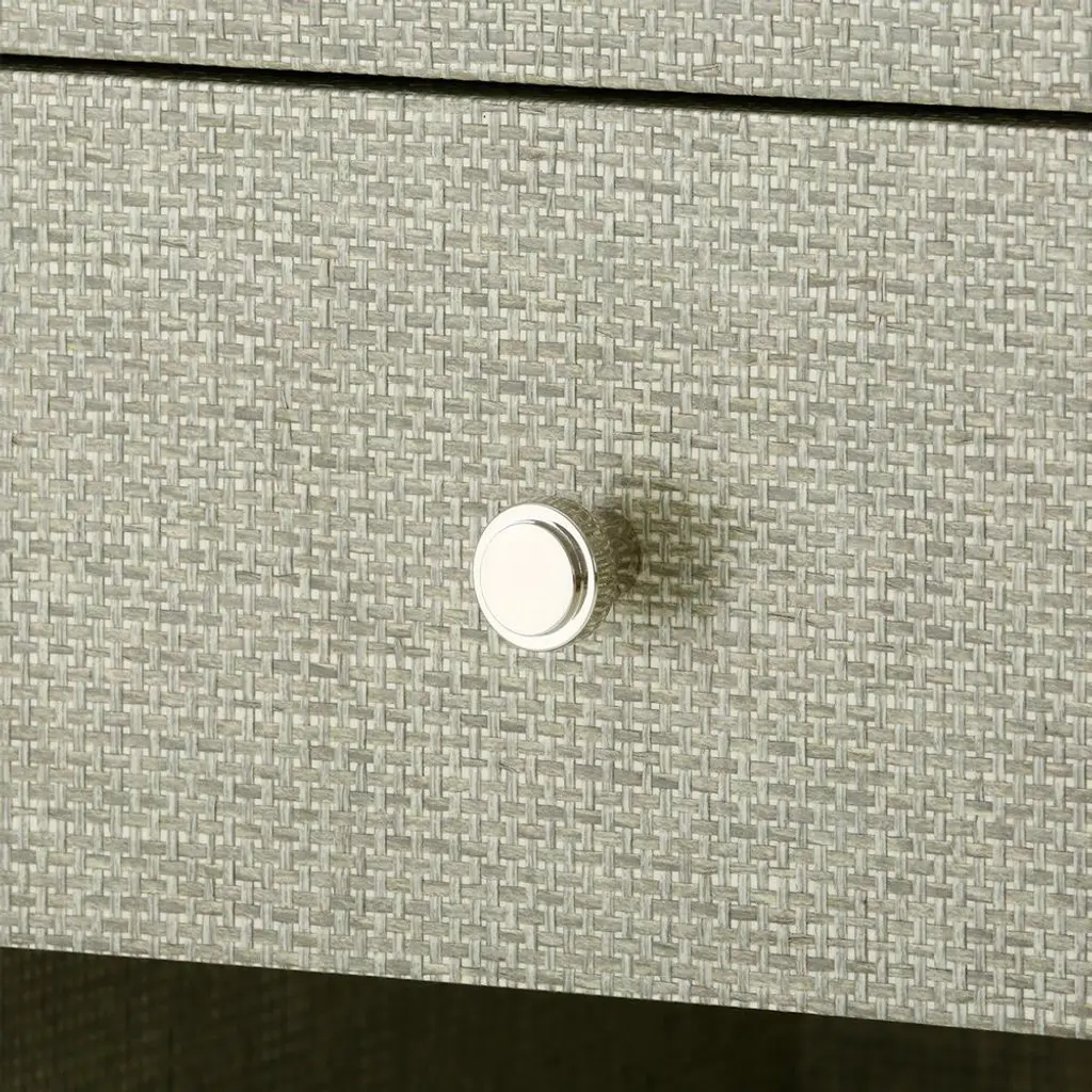 Fedor Modern Grey Grasscloth Silver Round Pulls 2 Drawer Nightstand