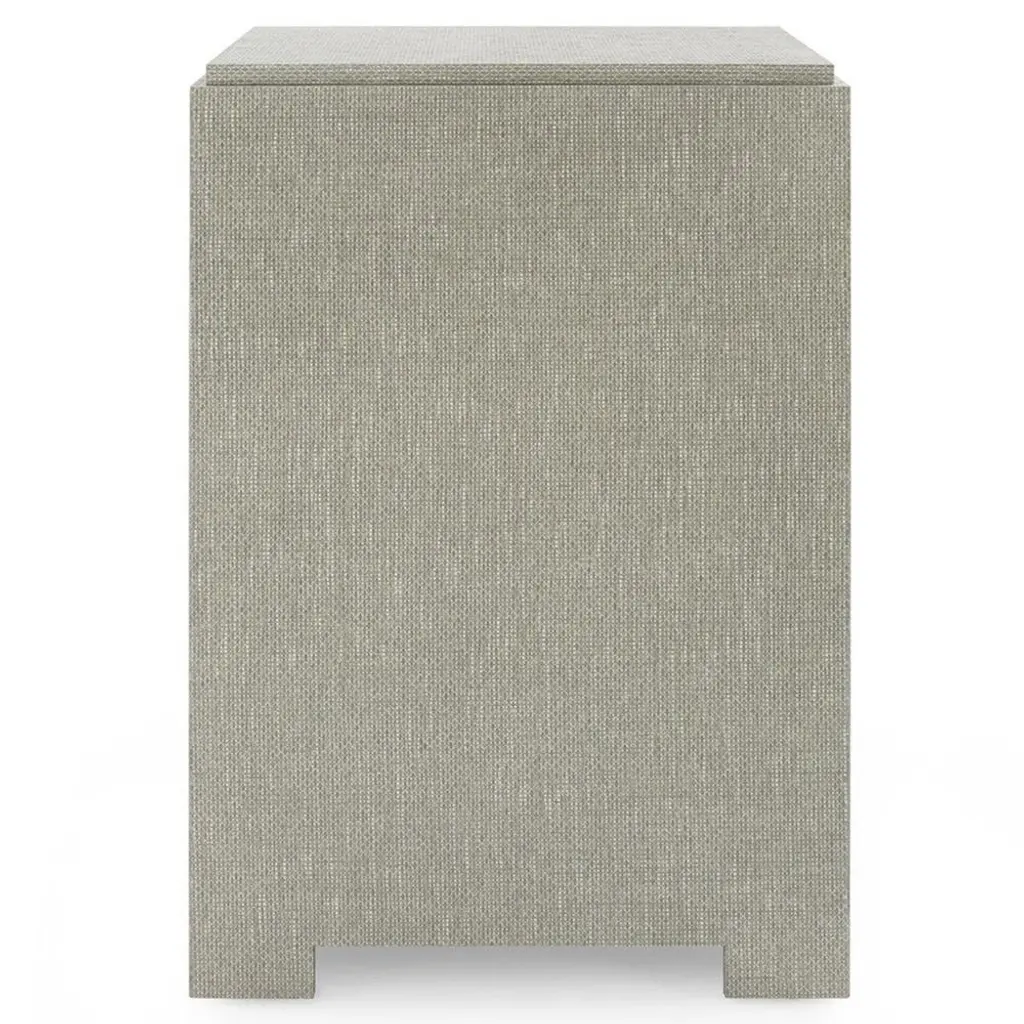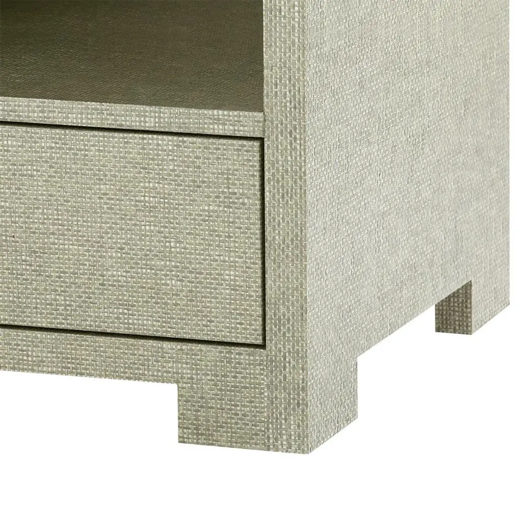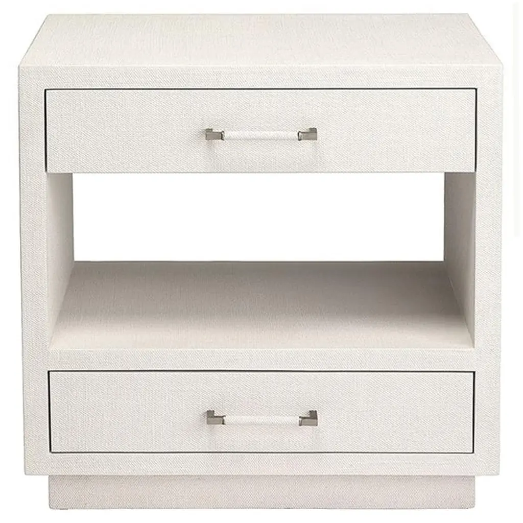 Fedor Modern Grey Grasscloth Silver Round Pulls 2 Drawer Nightstand