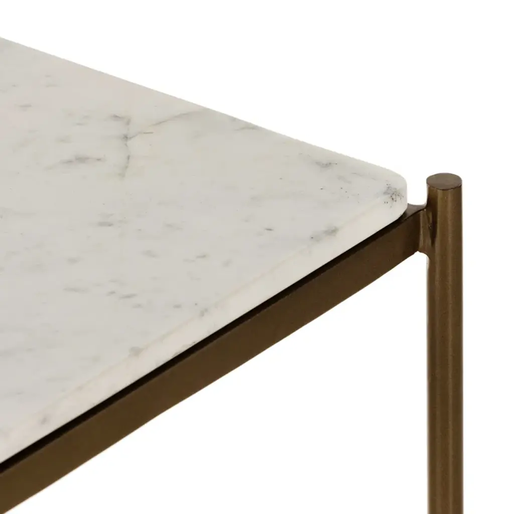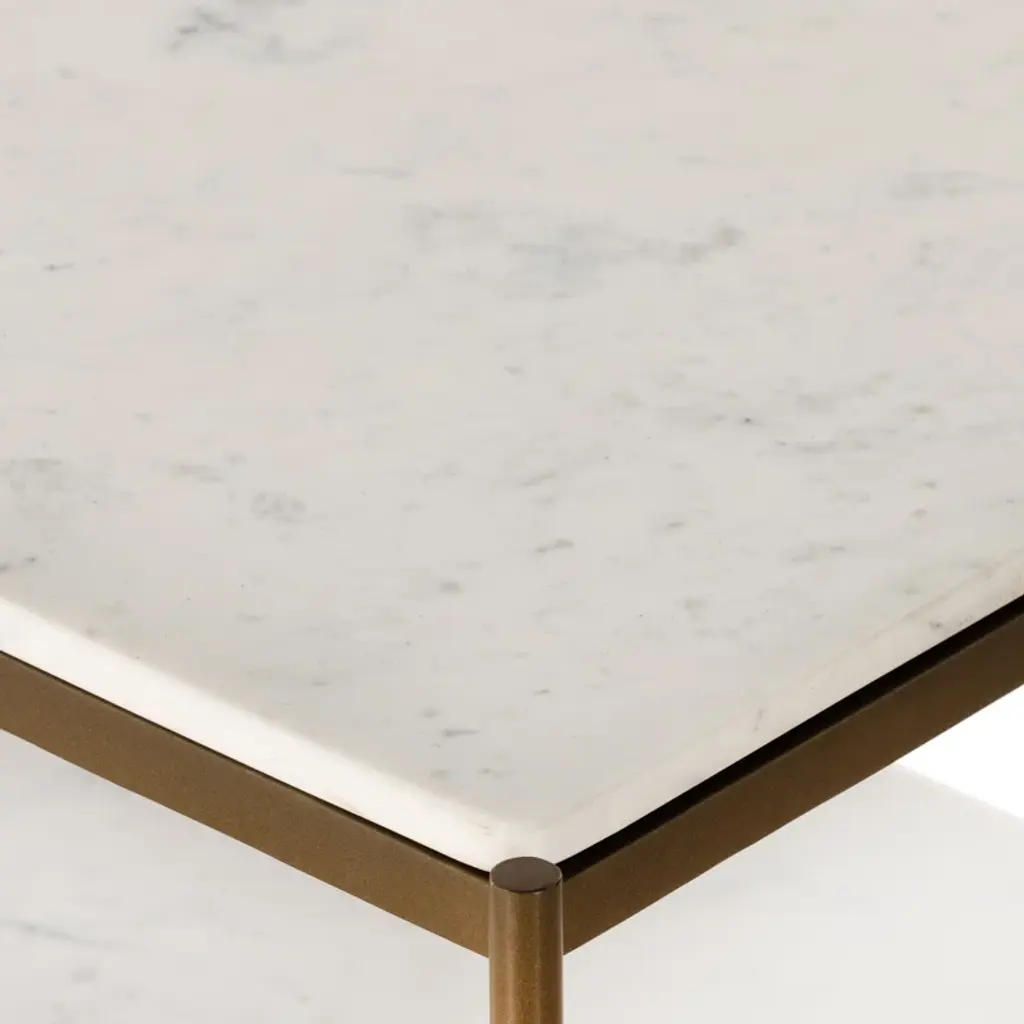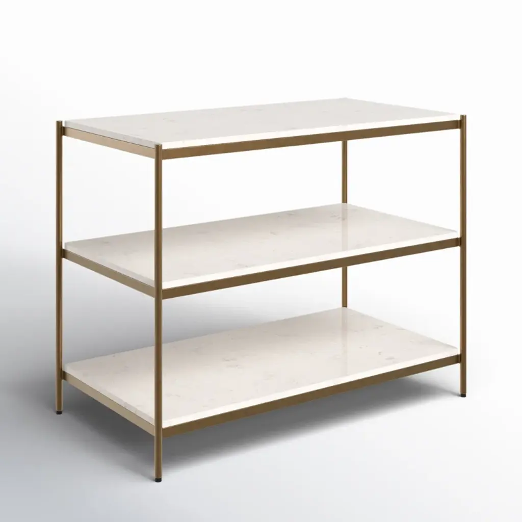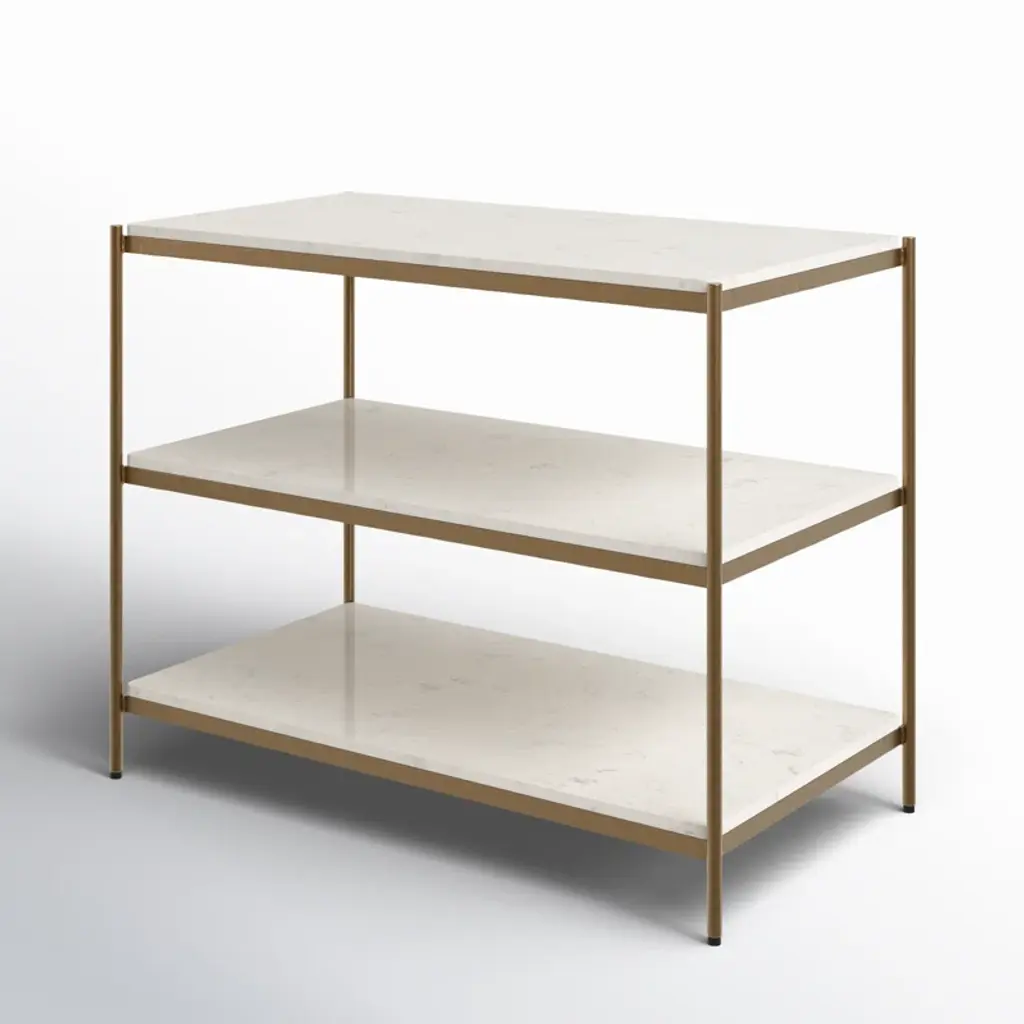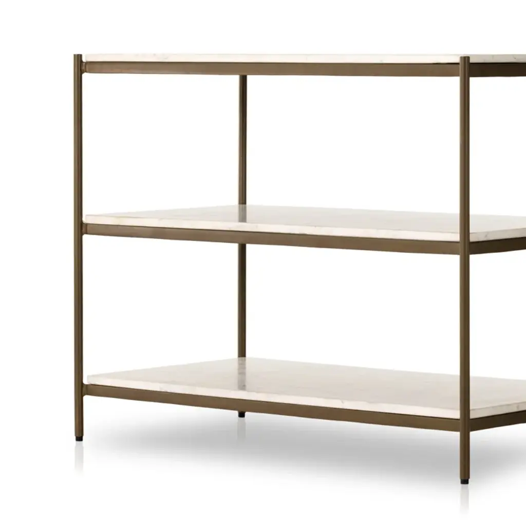 Add a pop of sophistication to any space. Classic white marble lays three spacious tiers of smooth shelving for generous surface area, while antique brass-finished iron framing places a feminine spin on bedside storage.