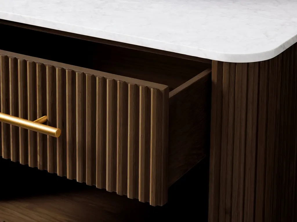 Our Finnley Bedroom Collection showcases a stunning mixed-material design, inviting elevated style into your bedroom oasis. Hand-finished pine from Finland or white oak wood is luxuriously accented by reeded oak detailing complemented by stone tops. The result is an eclectic-yet-chic bedroom suite that easily fits into the aesthetic of your home.