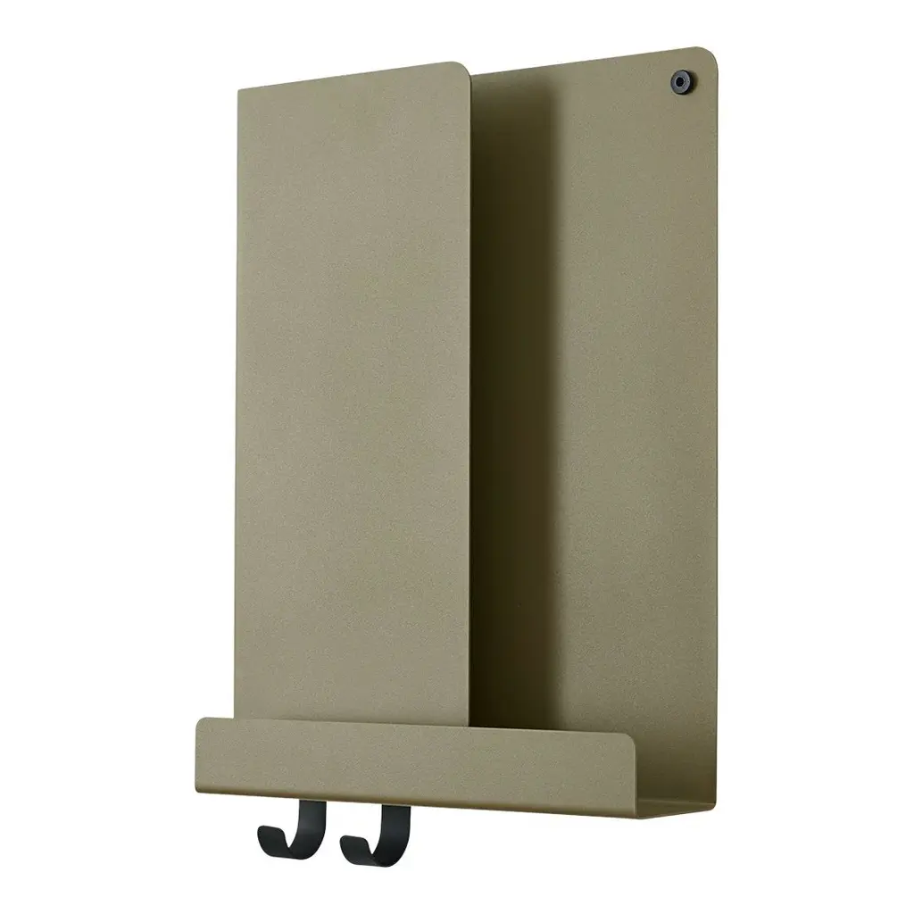 "Inspired by the shadow-play of layers, Folded is based on a seemingly simple bending technique of a single sheet of metal to create pockets which hold and separate your items. Featuring a subtle bolt and hooks for hanging objects, it is a versatile wall mount that can be used in both a practical and a decorative manner - suitable for organizing anything from mail to books, perfumes or spices, or just displaying your favorite belongings, in the hallway, bathroom, bedroom or kitchen." - Johan Van Hengel, Designer Made from a single piece of bended steel, the Folded Shelves have a graphically modern expression. To be mounted on wall. Each shelf comes with two bolts for mounting and two hooks for hanging objects on. Use it as a nightstand, in the hallway, kitchen, living room or office.