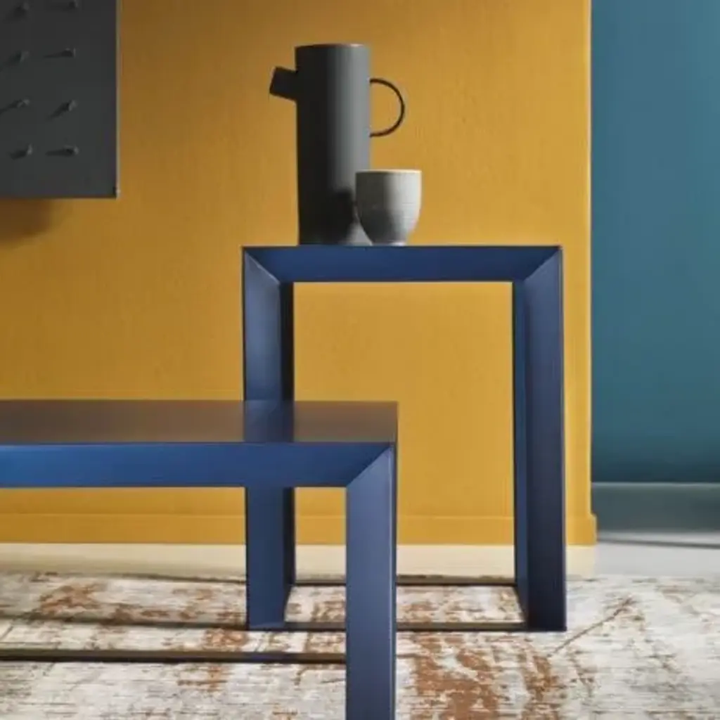 Frame is a collection of coffee table design completely made of steel. The main characteristic of the three-dimensional aspect, given by vertical and horizontal elements inclined at 45°, allows a different visualization depending on the point of view and underlines the originality. Frame is available in three different dimensions, two square and one rectangular format. The smallest model Frame 40 is particularly indicated as side table, to be placed next to the sofa, but also as bedside table to give a touch of colour, style and design to your bedroom. The models Frame 70 and Frame 120 are really indicated as living room coffee tables, to be placed in the centre of your living room, in front of the sofa. It is possible to choose between the 15 RAL colors and the 2 metallic colors (Oro/Gold and Rame/Copper) from the color range 2020. Frame coffee tables can be chosen also with marble top, available in three different types, Marquinia, Carrara and Emeperador.Use only clean water, with slight additives of neutral washing agents (pH 7), is to be used with the aid of soft, non-abrasive cloths, rags or industrial cotton. Strong rubbing is not to be undertaken. Assembling not required.