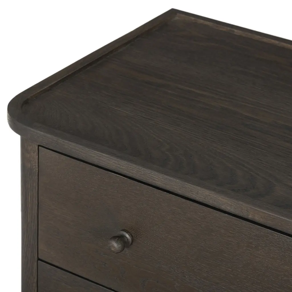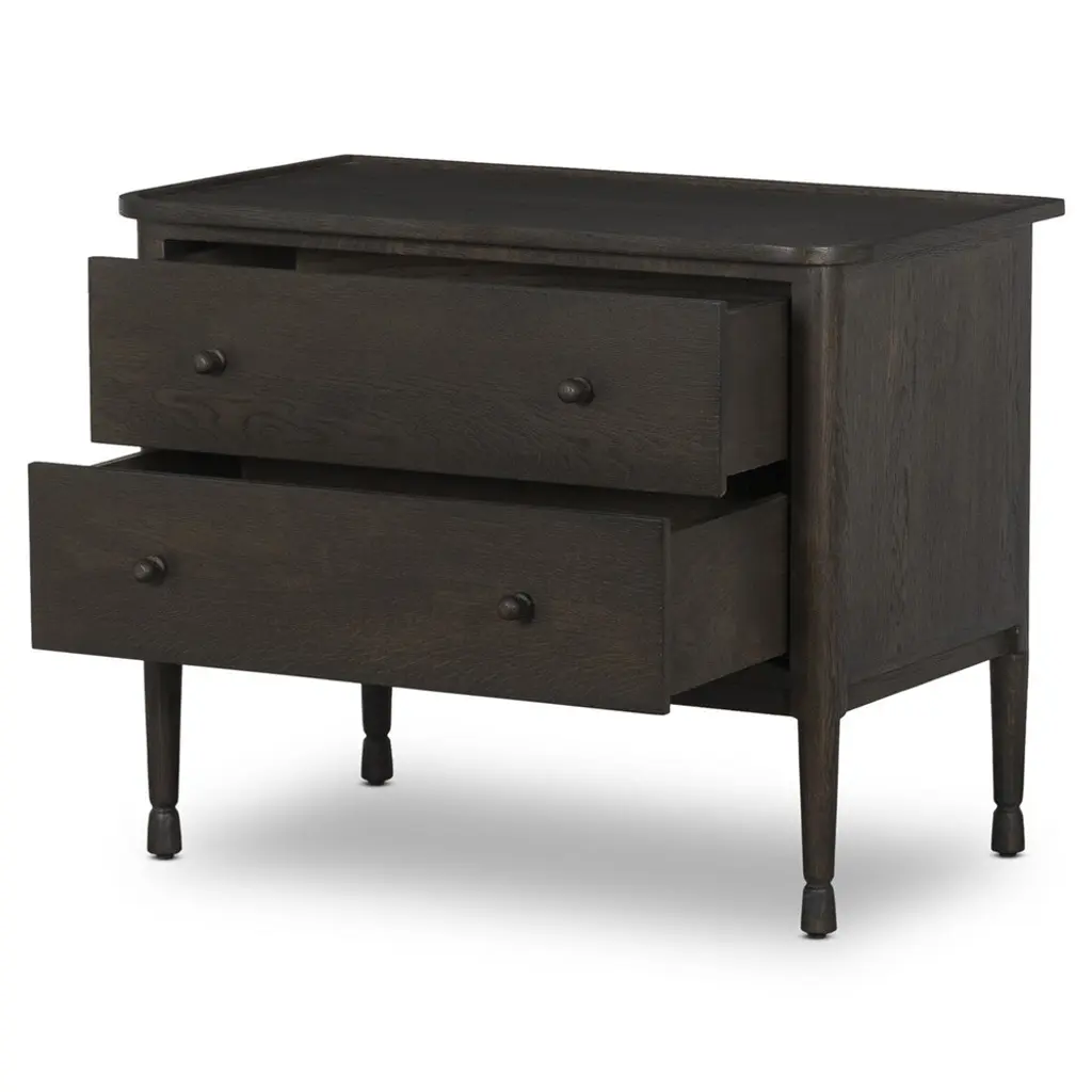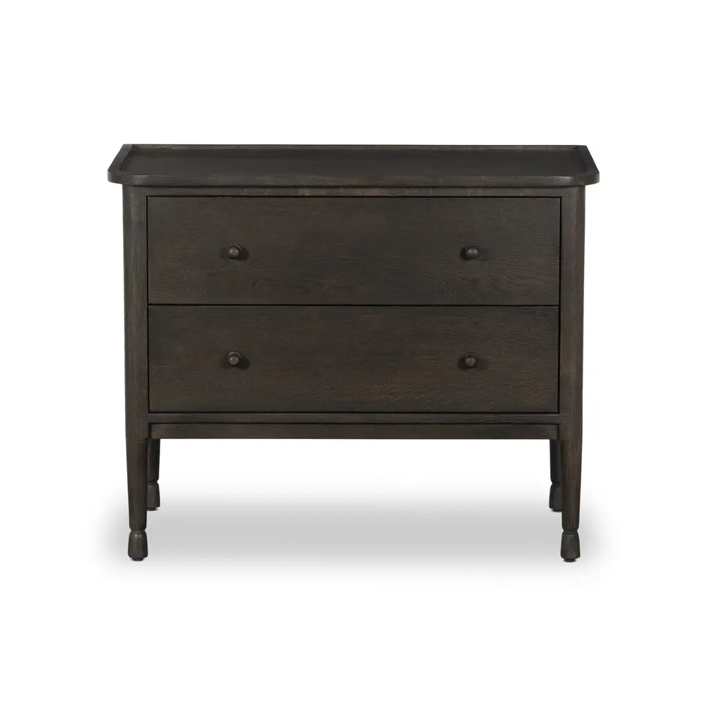 A design collaboration by Amber Lewis and Four Hands. Heritage-inspired while modern, set on tapered legs with a subtle turn and showcasing an overhanging top with a distinctive lip edge. Simple hardware complements the leg design, all in a dark espresso.