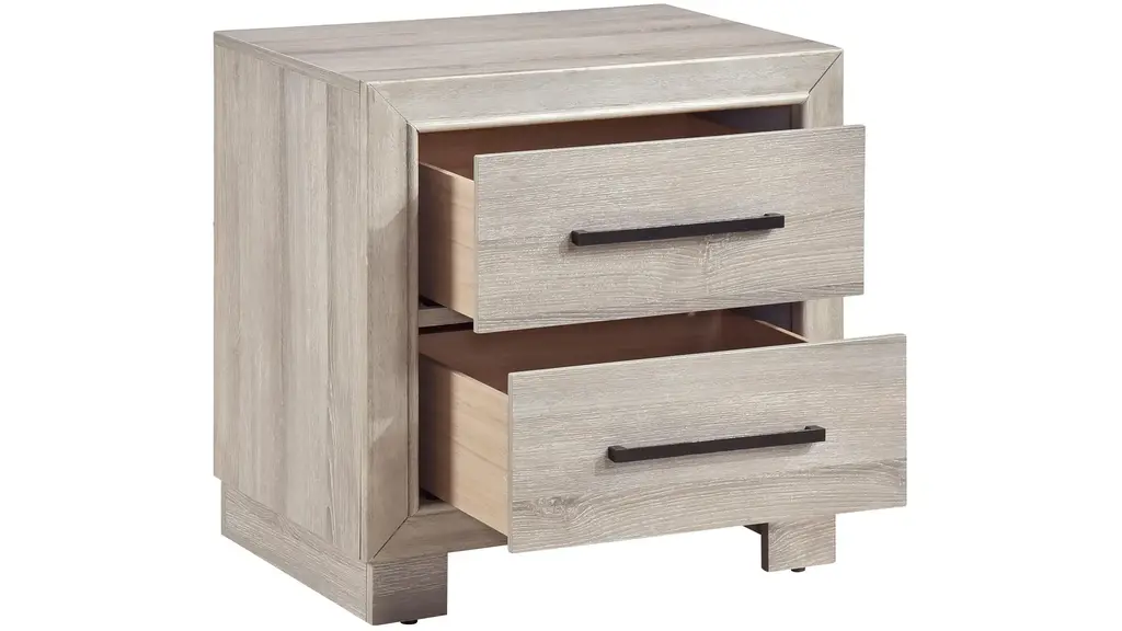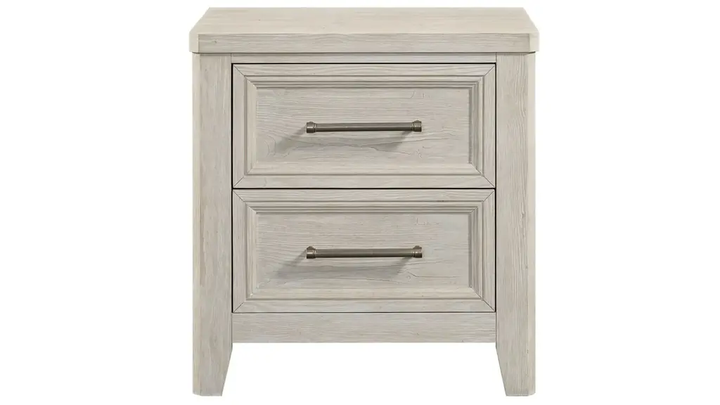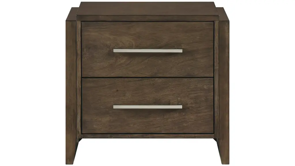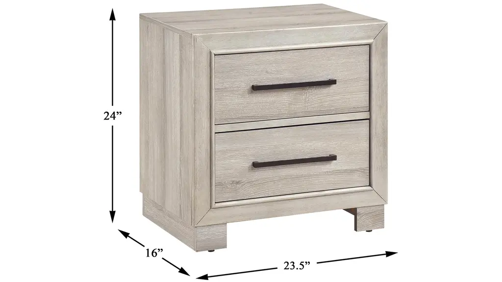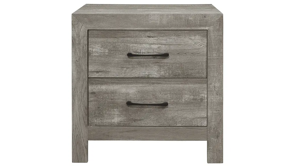 Enhance your bedside with the functional and stylish modern Fraser Nightstand. Featuring a sleek gray finish, this nightstand offers convenient storage with its two smooth-gliding dovetail drawers, each equipped with durable metal-on-metal center glides for reliable use. The elegant antique brass tone bar pulls add a touch of sophistication, complementing the clean lines of the design. Crafted from a sturdy combination of premium melamine board, wood, and engineered wood, this nightstand offers lasting durability and style. Best of all, this nightstand arrives fully assembled, so you can enjoy its benefits right out of the box.