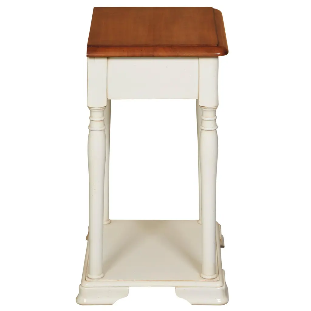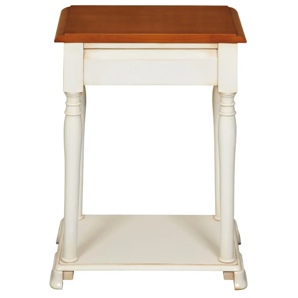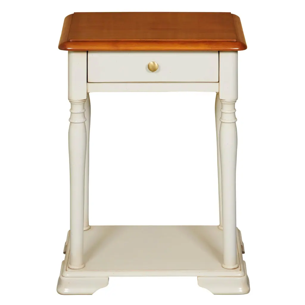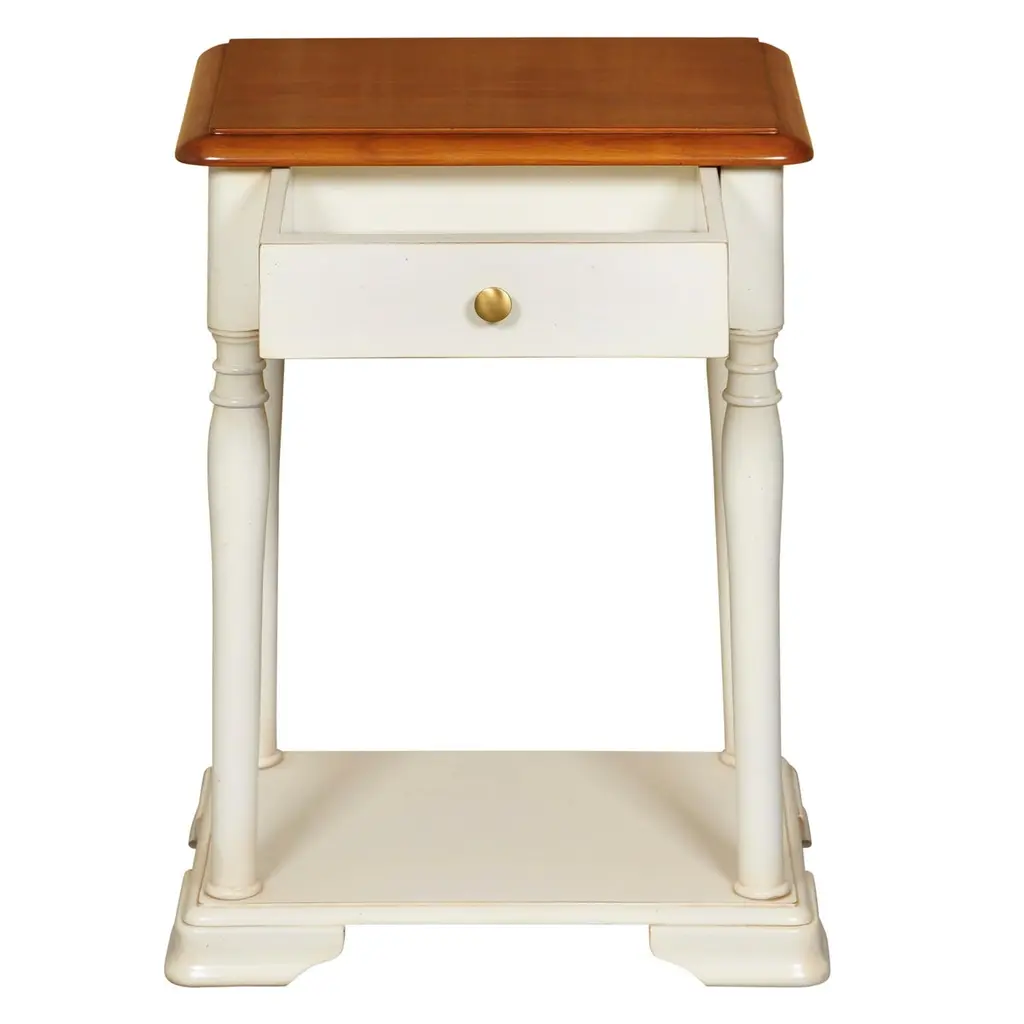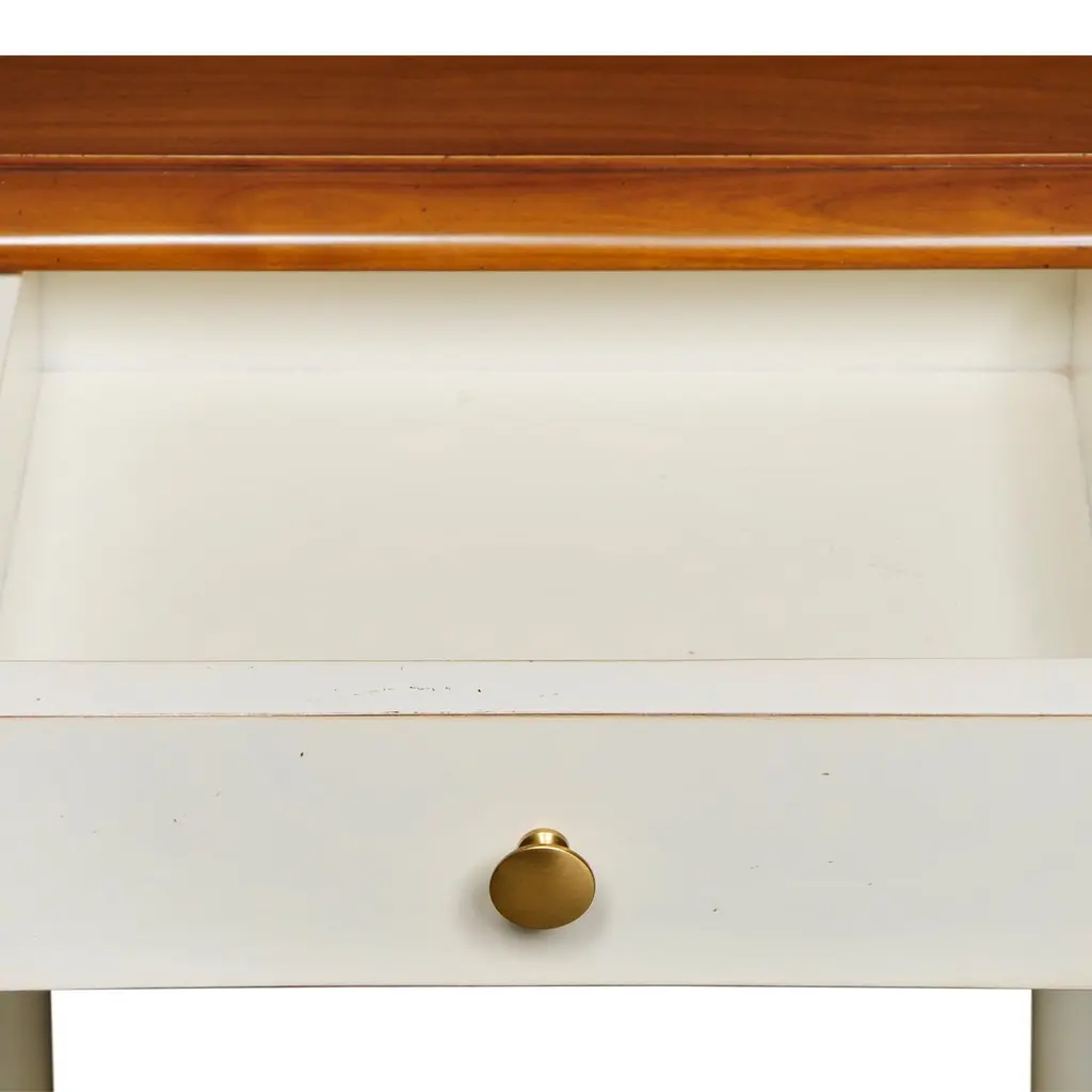 This bedside table is a handmade reproduction of the French Louis Philippe Style in the mid 19th century in France characterized by its curved moldings, hand-curved feet and rounded shapes and design.1 drawer is integrated n the front with an "english" brass knob.1 wooden shelf between the 4 feet. The proposed finish is our blond cherry stain and a white cream lacquer. The sourcing of the solid wood comes from sustainably managed French forests.Gontieris furniture brand established in France since 1920 and now part of the group Mon Petit Meuble Francais. It provides exclusively 100% made in France classical and contemporary pieces of furniture.The manufacture of each furniture is made accordingly to traditional French techniques of woodworking by small craft workshops in the western countryside of France (Loire Valley and Bretagne). We offer a 5 year warranty on each piece.