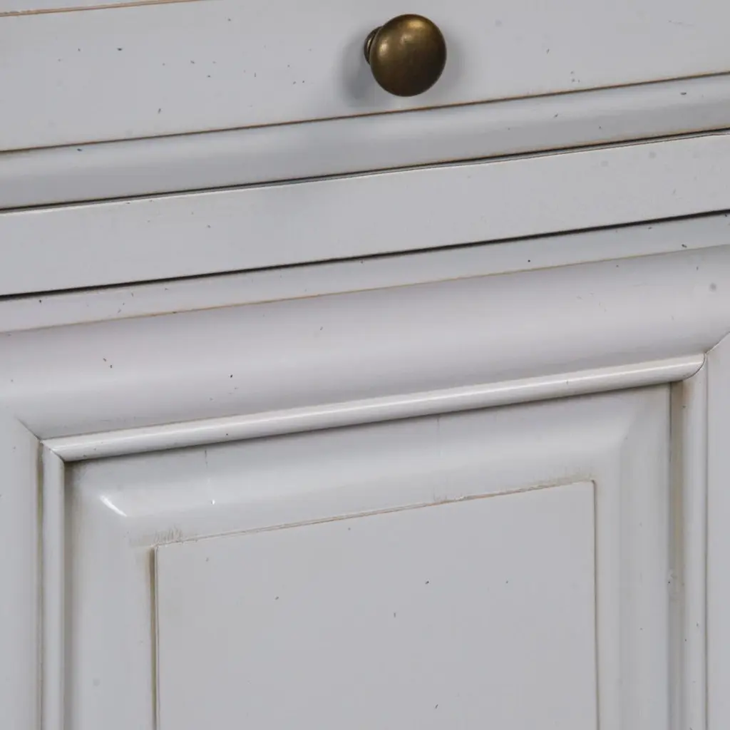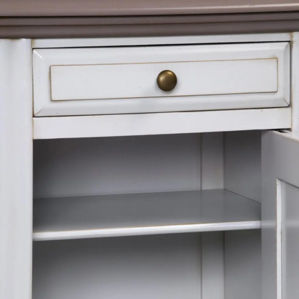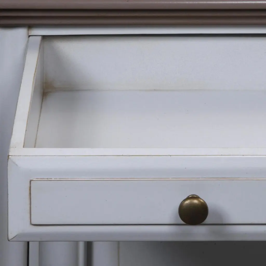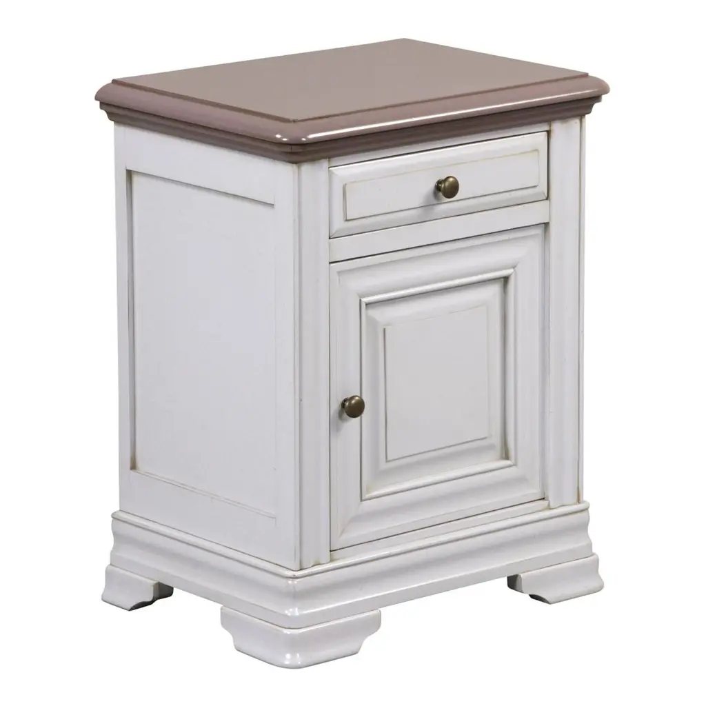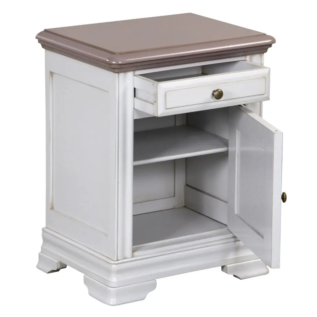 This bedside table in solid French cherry wood is also available in oak.Each bedside table has an ogee drawer above the door. The drawer front is dovetailed for strength and durability.The opening of the door and the drawer is done with the English button in brass.The finish adopted here is a grey-maroon lacquer on the top of the bedside table and a pearl gray lacquer on the rest of the furniture.The finish of each piece of furniture is customizable. FLAUBERT collectionThis bedside table is part of the FLAUBERT collection which takes up the Louis-Philippe style which was very fashionable at the beginning of the 19th century and which brings comfort and ergonomics to the furniture. This range is characterized by soft, curved lines with borders, clogs, ogee drawers, and turned legs, for example.Gontieris a cabinetmaker's furniture brand established since 1920 in Mayenne, France.It now belongs to the company MON PETIT MEUBLE FRANÇAIS.The manufacture of each piece of furniture remains artisanal, 100% French and of very high quality.The solid wood comes from sustainably managed and PEFC certified French forests.We offer a 5 year warranty on every piece of furniture.As proof of their authenticity and uniqueness, our furniture is burnt with a "G" hallmark.