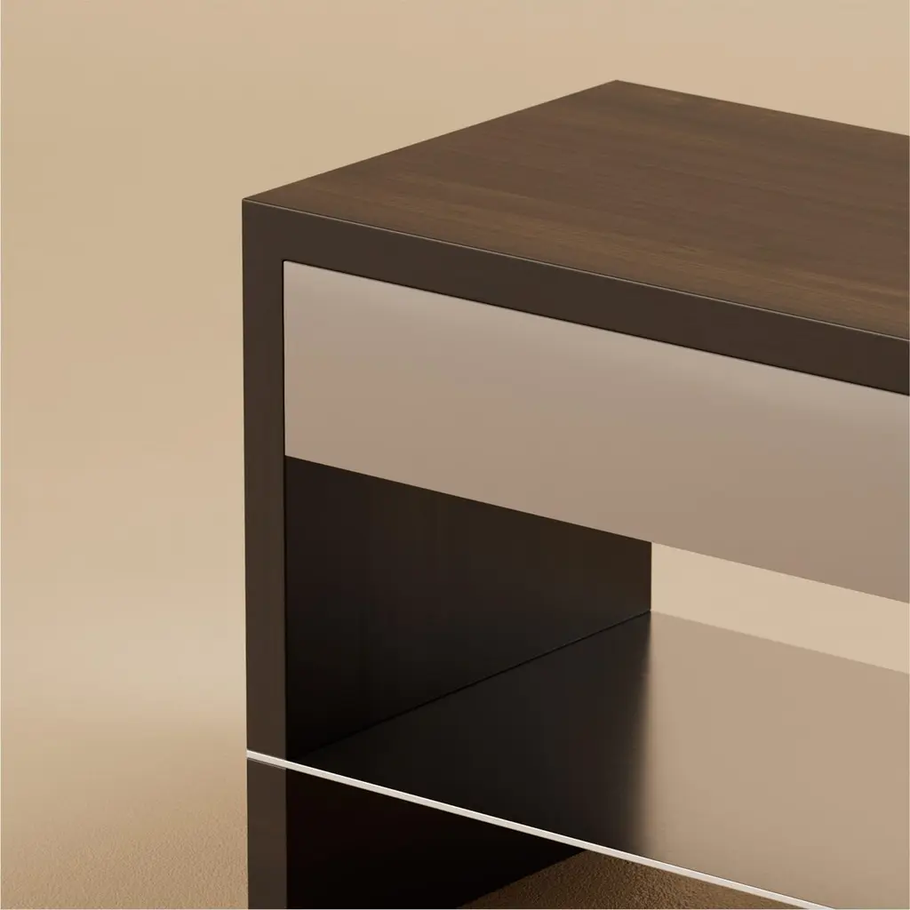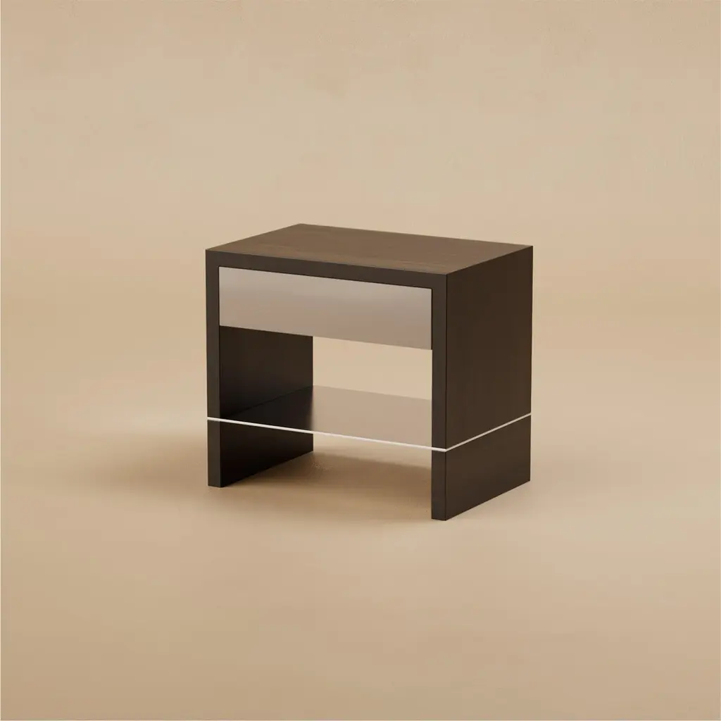 The Grant Bedside Table refines the bedroom to its essentials. Satin lacquer drawers, lined in leather, are housed within a walnut frame, while a slender metal shelf completes the composition. The result is calm, balanced, and grounded.Each element, the grain alignment, the integrated pulls, the quiet precision of the drawers, reveals Lusano’s devotion to detail. Functional yet understated, the table is designed to harmonize with the Grant Bed, or to stand alone as an expression of architectural simplicity.The Grant Collection is Lusano’s foundation, a study of geometry, cabinetry traditions, and quiet sophistication. Born from the rhythm of paneled interiors and the discipline of old-world woodworking, the collection honors detail without ornament, permanence without weight. It is furniture designed not just to fill a room, but to give it clarity.Founded in Los Angeles with European roots, Lusano merges old-world craftsmanship with contemporary restraint. Influenced by Italian heritage and Scandinavian minimalism, each sculptural piece reflects an architectural approach: precise, soulful, and enduring. With reverence for materials and detail, our collections are designed to live beautifully and shape the way we inhabit space, inviting quiet moments, meaningful use, and beauty that deepens over time.DetailsYear: 2025Origin: Handcrafted in Los AngelesSerial Number & Certificate: Provided with each pieceEdition: Numbered EditionCustomization: Available (+10% upcharge, lead time 12–15 weeks)Materials: Shown in ebonized walnut with satin lacquer drawers, leather inlay, and stainless steel shelfFinish Options: Available in Natural Walnut or Ebonized Walnut, with Blackened or Stainless SteelNote: Given the nature of wood, each piece will vary in appearance.