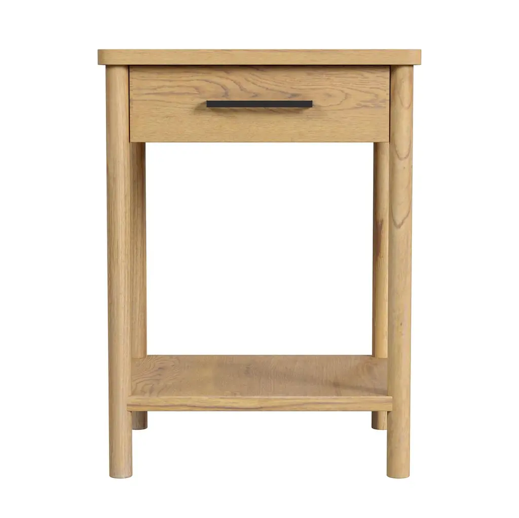 The Gemma Collection is a harmonious blend of midcentury design and farmhouse style, creating a fresh and clean aesthetic that captivates the heart. Its elegantly rounded legs extend gracefully alongside the nightstand, offering a romantic silhouette that enchants any room. With a spacious pull-out drawer and a lower shelf, this nightstand not only provides ample storage but also invites a sense of warmth and charm into your space.
