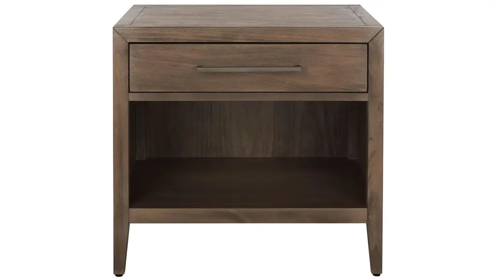 The Gemma Collection is a harmonious blend of midcentury design and farmhouse style, creating a fresh and clean aesthetic that captivates the heart. Its elegantly rounded legs extend gracefully alongside the nightstand, offering a romantic silhouette that enchants any room. With a spacious pull-out drawer and a lower shelf, this nightstand not only provides ample storage but also invites a sense of warmth and charm into your space.
