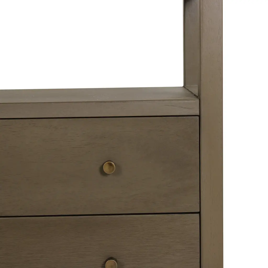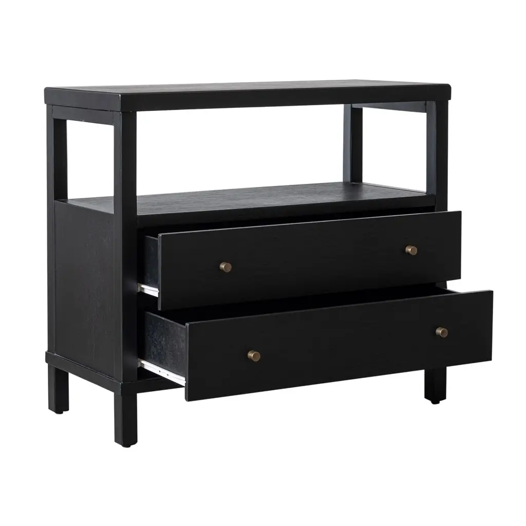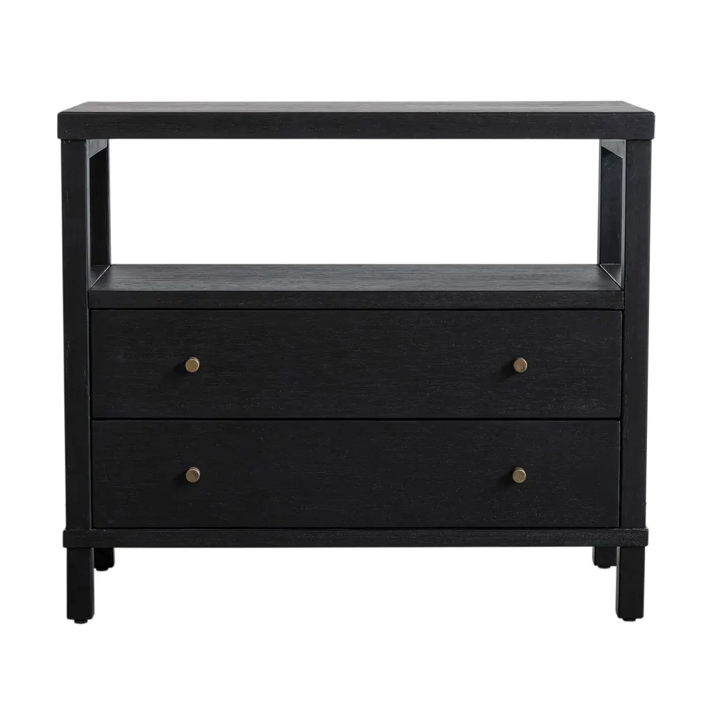 Featuring generously sized double drawers and an open shelf, this nightstand offers substantial storage for your bedroom essentials, ensuring practical organization. Crafted from natural bayur wood, its rich color options of black and warm brown showcase a versatile transitional design that seamlessly blends simplicity and functionality. An ideal addition to your home decor, this tailored nightstand strikes the perfect balance between style and utility.