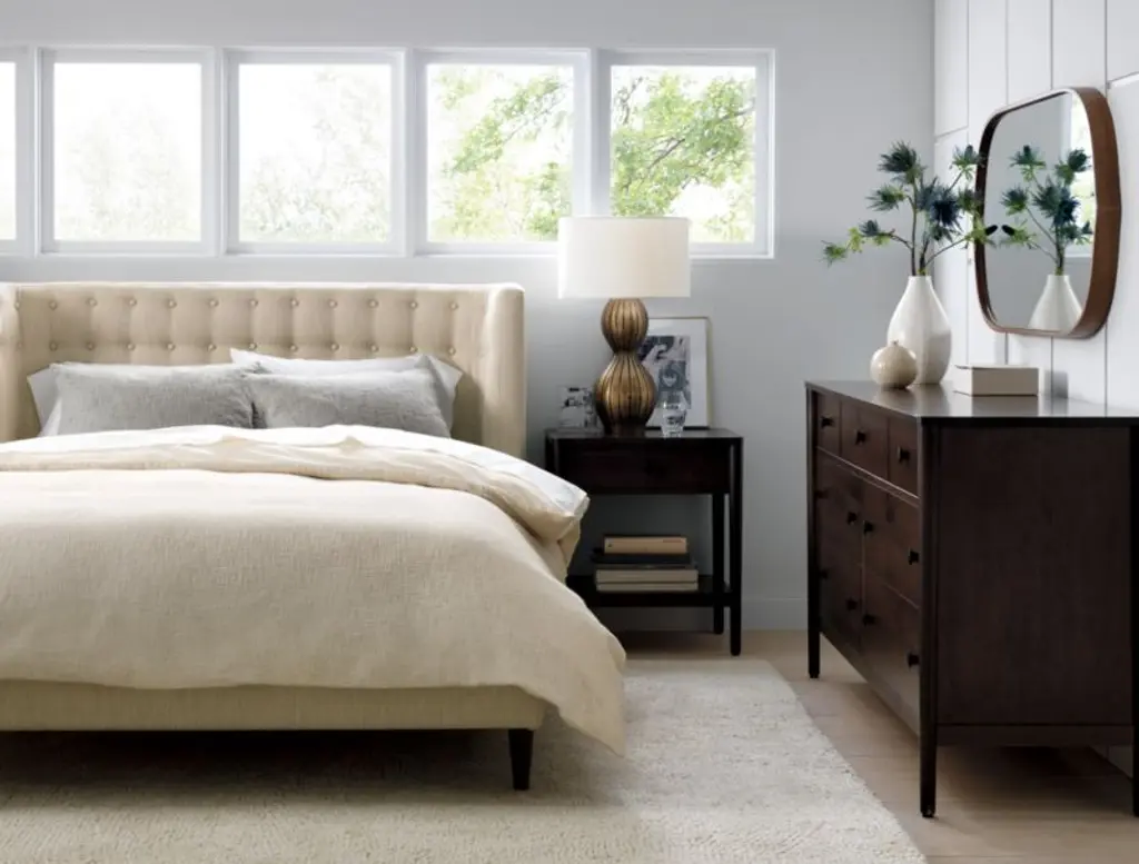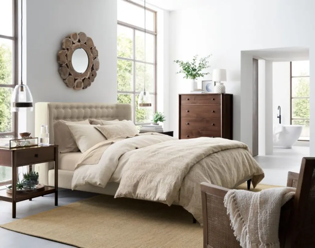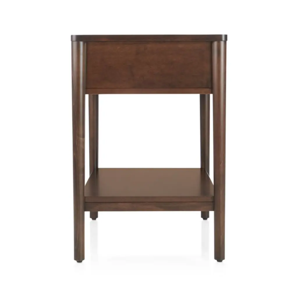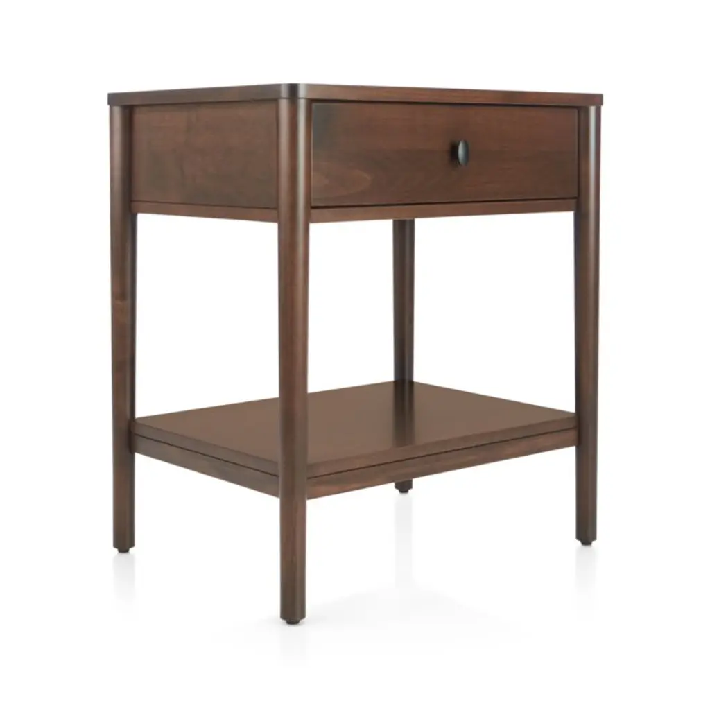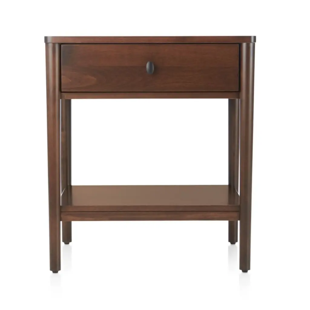 Gia case goods reinterpret American artisan-made furniture, updating classic curves in a streamlined design of solid maple with a rich cocoa finish. Designed by Blake Tovin, Gia simplifies tradition with updated lathe-turned legs and gently curved corners. Soft oval knobs of matte bronze cast metal continue the theme of soft curves and corners.