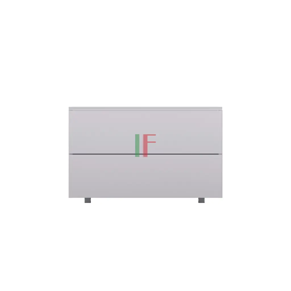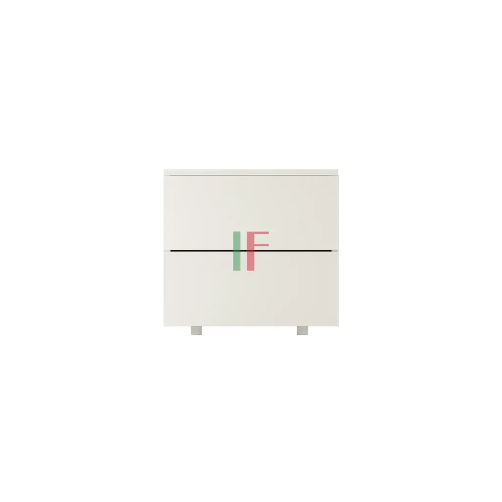 The Glossy Grooved Nightstand by Lema is a floor container system comprised of drawers, night tables and seven drawer dressers, all with great capacity, that become part of the bedroom through their discreet charm. Rigorous geometric purity of essential and compact volumes, monoliths of material and color marked by the shape of the grooved profile of the handle, at times lateral and at others central. The attention given to proportion, the slight differences in alignment between the parts and the material palette enhanced by the top in wood, matt or glossy lacquered, or natural stone, characterize a group of understated and elegant products, easy to combine with diverse styles of beds.