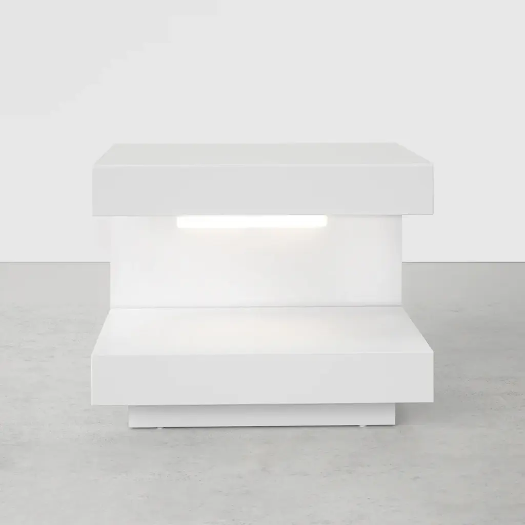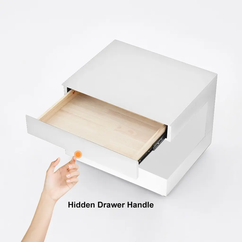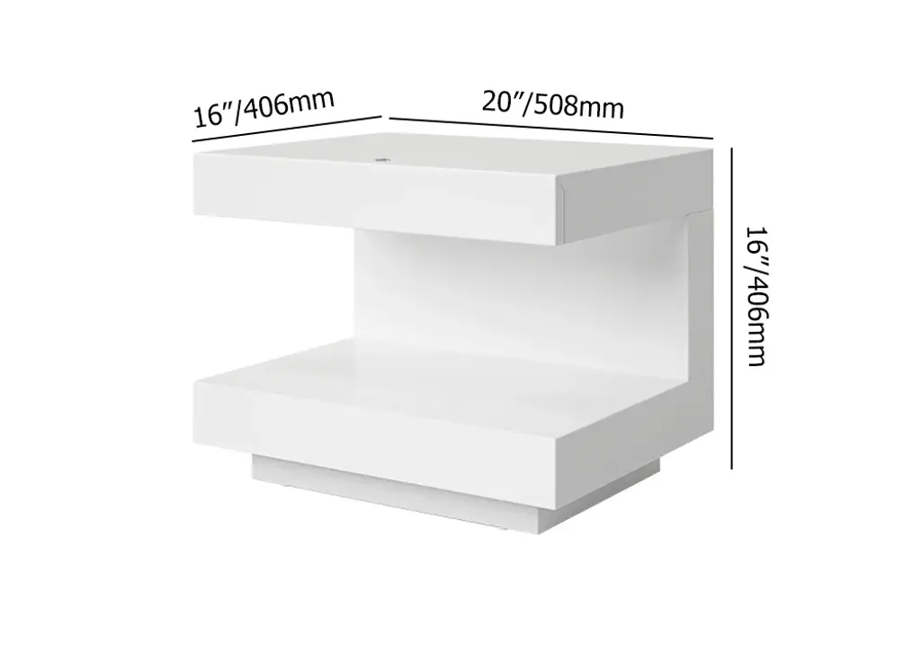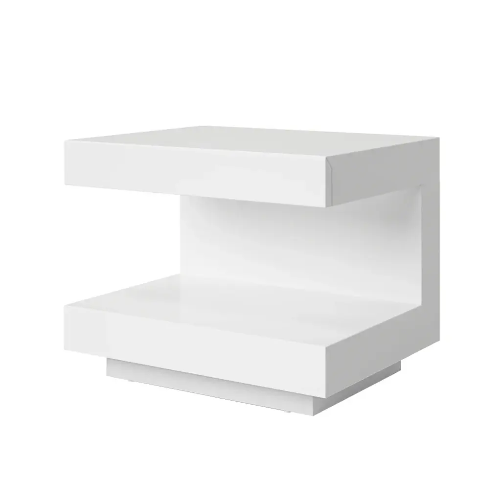 This glossy white nightstand brings modern elegance to your bedside. Its unique C-shaped design offers a light, airy look while providing stable support. The smooth drawer keeps essentials organized, and the built-in LED lighting creates a warm ambiance for your nighttime moments.