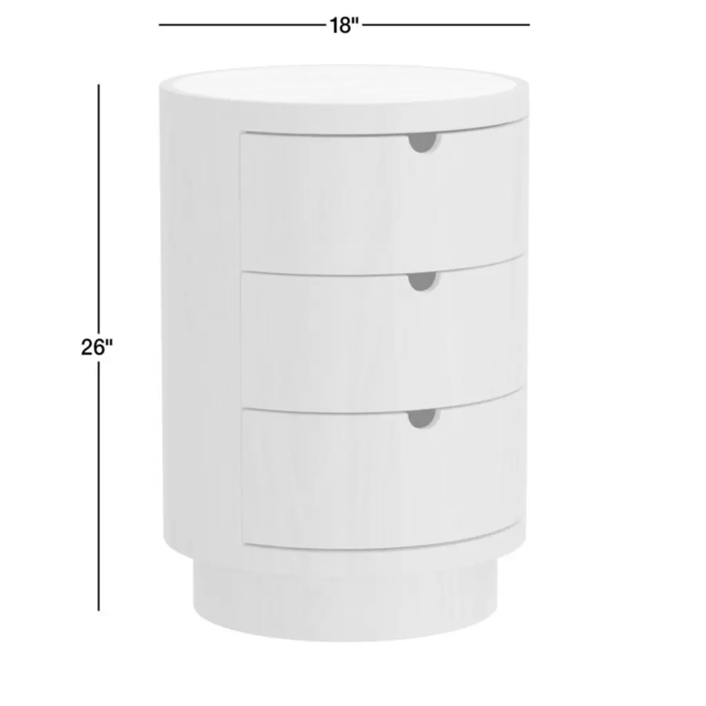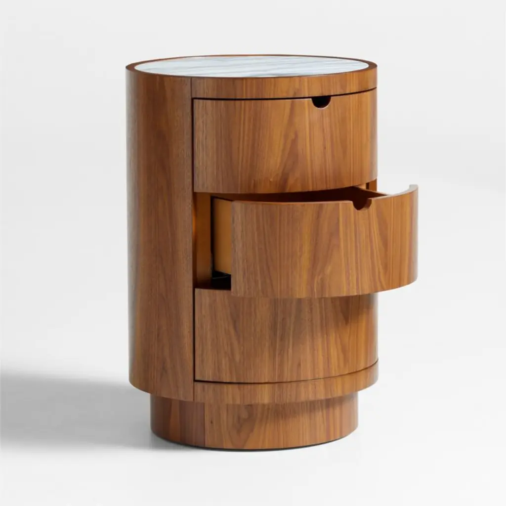 Simple in shape but super impactful in execution, our Gracia nightstand defies expectations. Beautifully grained walnut veneer makes the rounds on the circular plinth base and cylindrical frame, with three drawers flush to the contours with finger pull cutouts. The drama doesn't stop there: an inset top of Arabascato marble wows with cool grey veining with hints of gold unique to each piece. Our Gracia nightstand is the perfect accent to take your bedroom decor in a bold new direction.