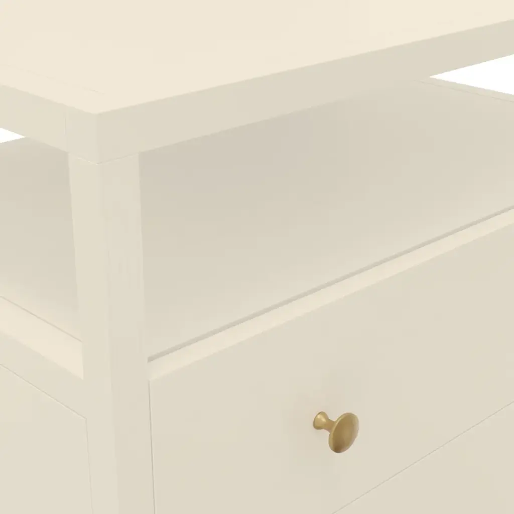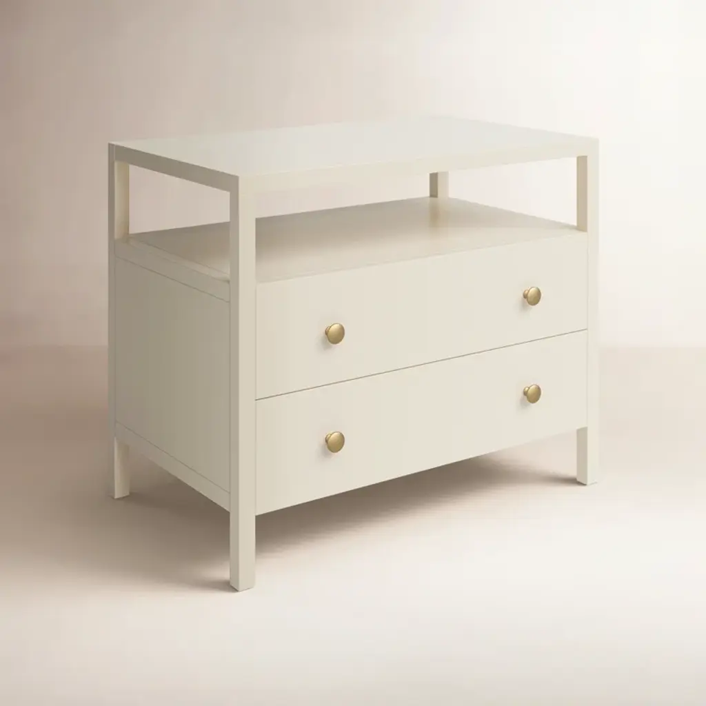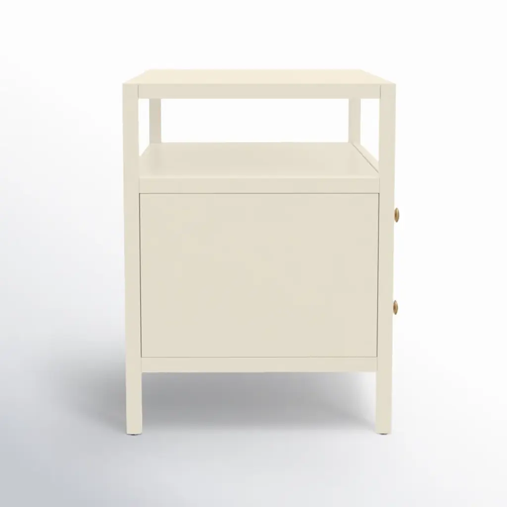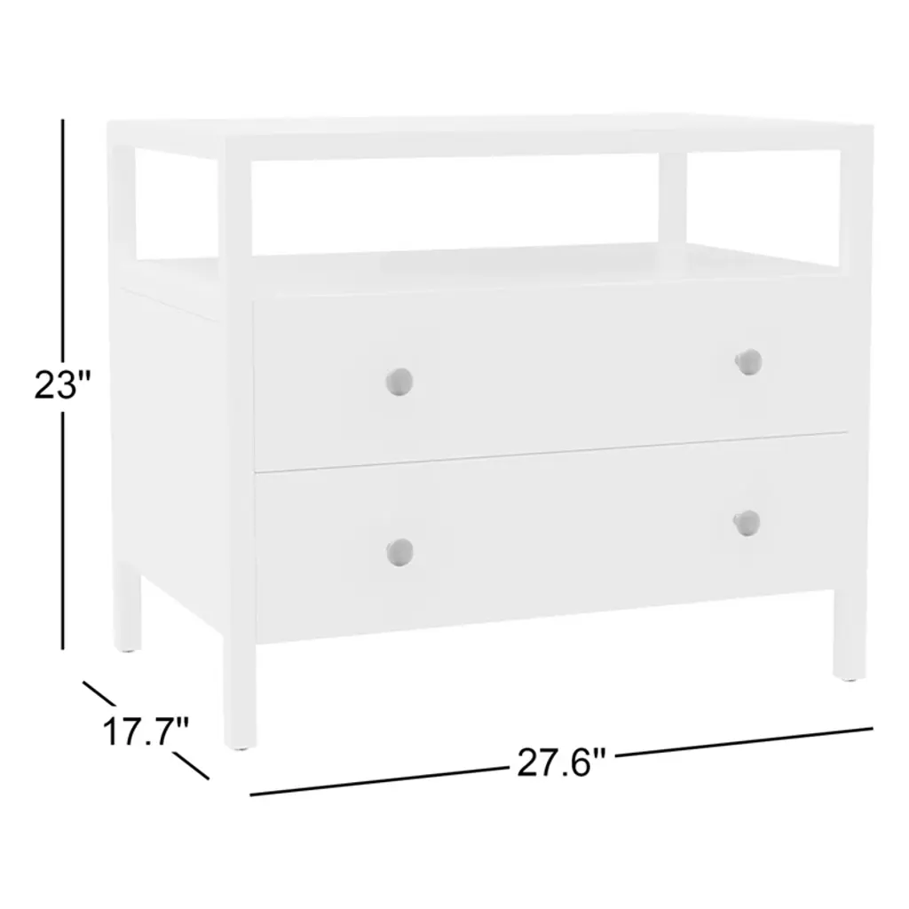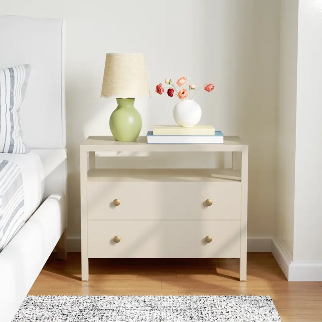 Add the finishing touch to your bedroom with this nightstand. Crafted from wood, the rectangular shape is home to two ample drawers that are great for storing all your bedtime essentials. We love that the open shelf provides the perfect spot for your coveted to-be-read stack of books. Circular drawer pulls and clean lines round out the design.