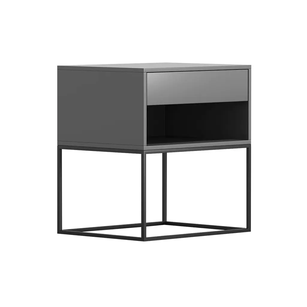 - This pedestal nightstand is a stunning and dramatic bedside table that blends elegance with the convenience of space. - This nightstand offers a sleek design and textured surface for a contemporary, minimalist style because the smooth top and drawer with one open space shelf give adequate room for diverse and influential usage. - Constructed with high-quality manufactured wood in gray and framed of metal foundation in black, which is small but formidable, it gets many usages, whether it’s continuously stacked up with a stack of books and an overflowing collection of coffee cups or kept clean clutter-free to induce night-time serenity.
