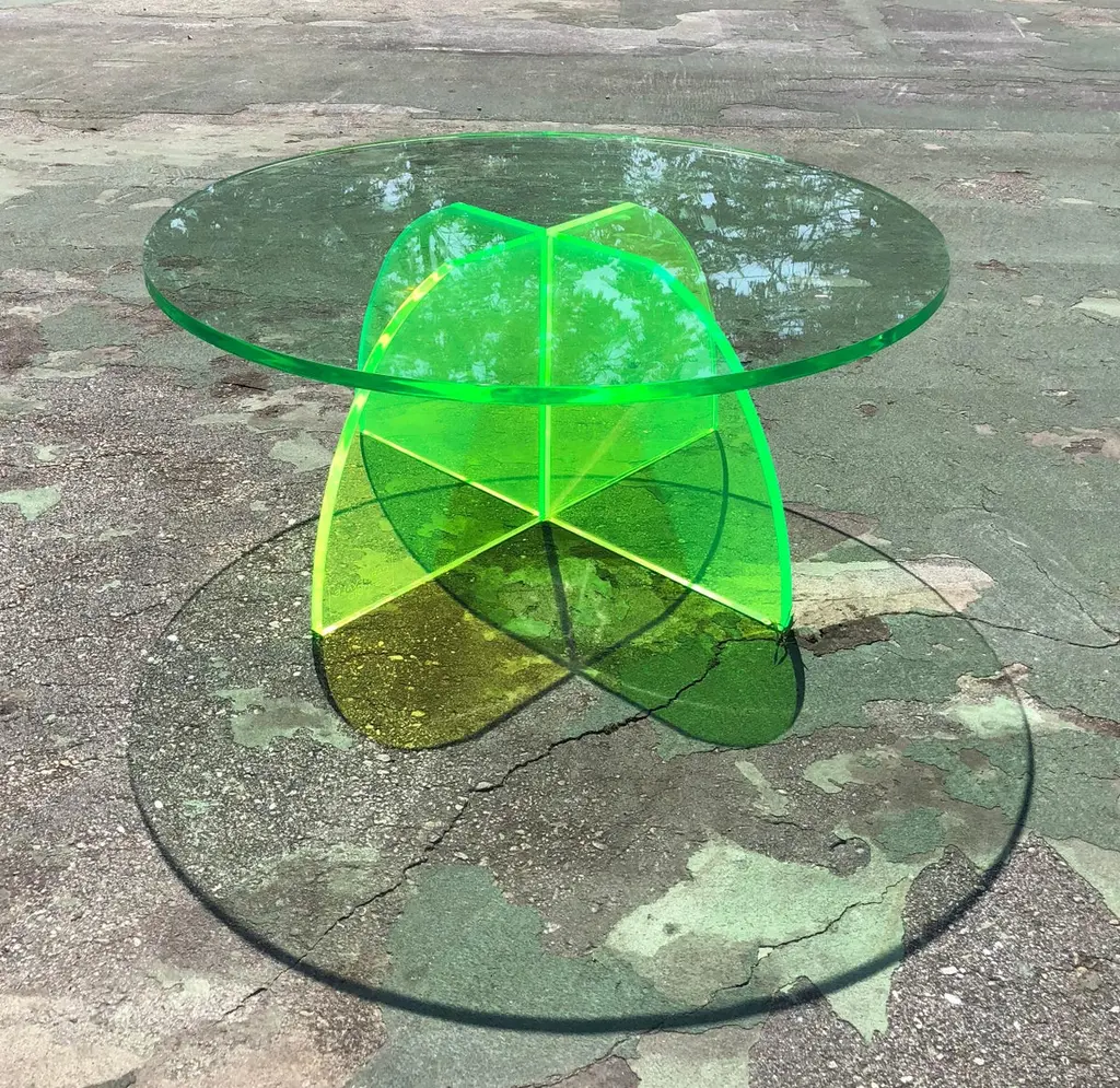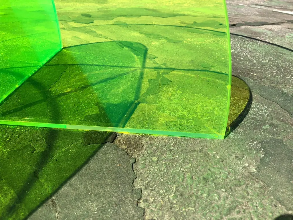This is Carnevale Studio’s first acrylic collection of tables. Shown first on 1stdibs! This collection consist of a Coffee Table, Side Table & Bedside Table.Jessica had been working with glass and it was these experiments (making her first neon lights) that sparked an interest in taking translucent materials further. The result is a collection of acrylic tables that are delicately colored, each one playing with light in ways that surprise and delight.By focusing on subtle variations in hue, an ombre effect was achieved; the softness in color in stark opposition to the hard sheets of acrylic. Carnevale Studio’s designs combine new materials with unusual processes. We strive to make work that is engaging and delightful.