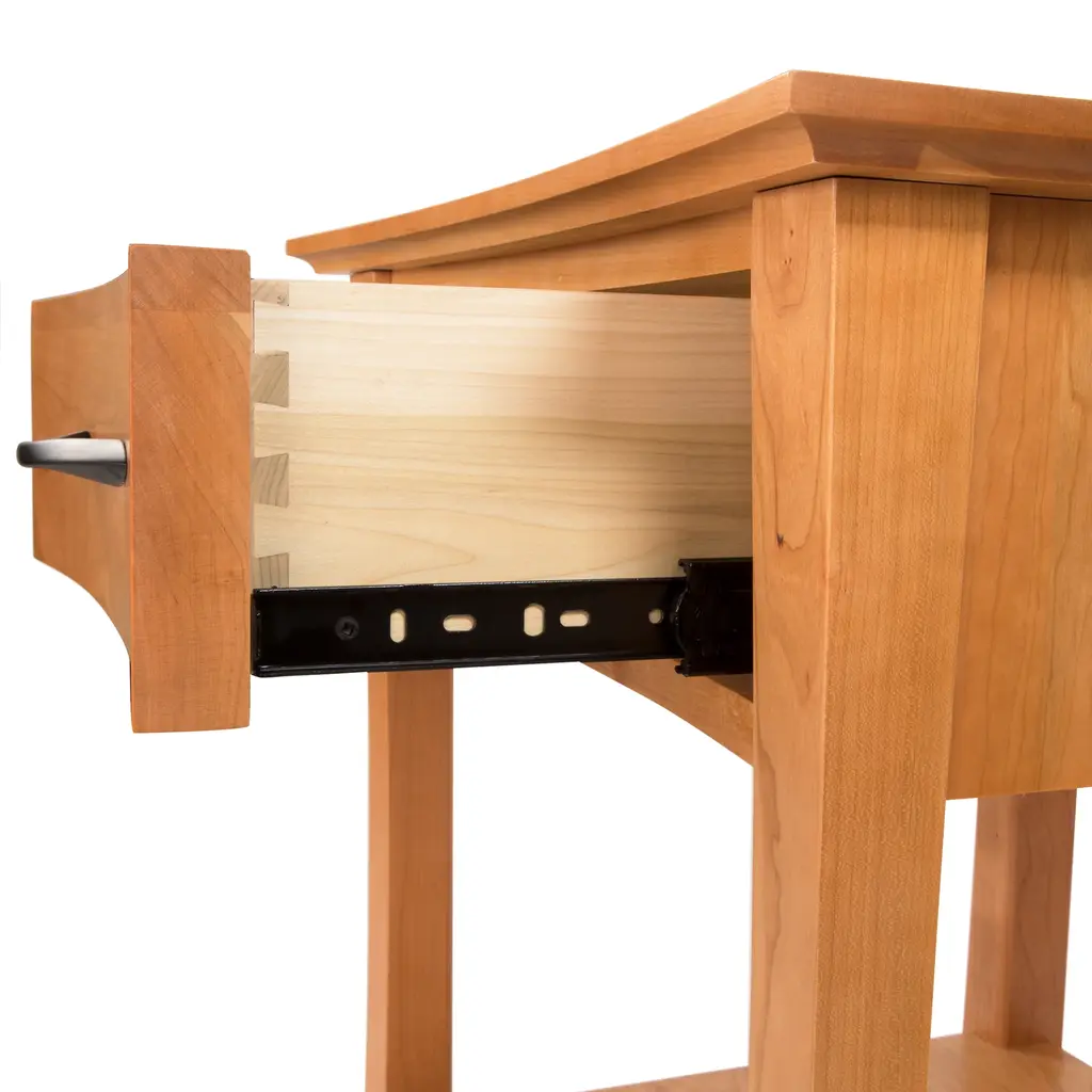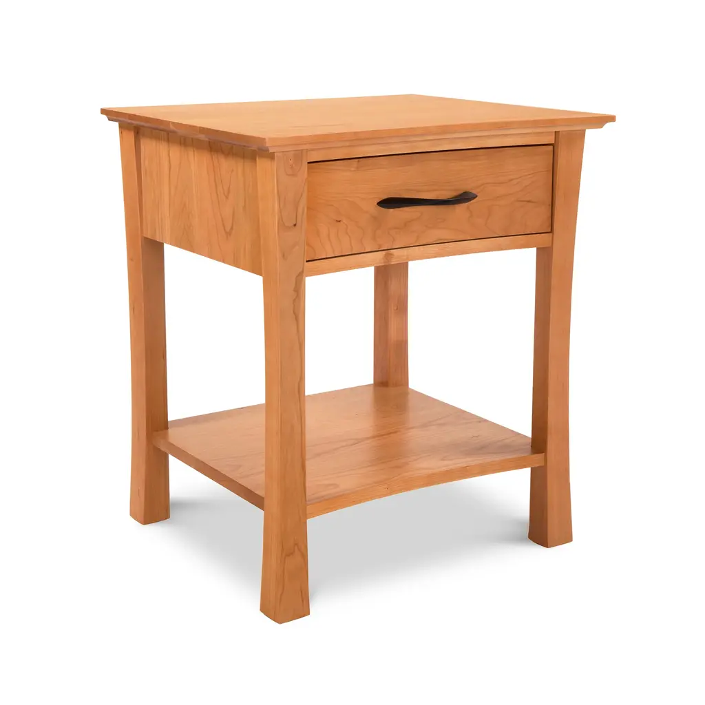 Our Green Mountain 1-Drawer Open Shelf Nightstand is handcrafted in Vermont using sustainably harvested hardwoods, making it the perfect, high end bedside table. The satiny feel and slightly concave design of this modern piece is perfect for any bedroom.Base price represents nightstand in natural cherry with black metal pullShown in natural cherry with black metal pullMatching furniture available in our Green Mountain Furniture Collection