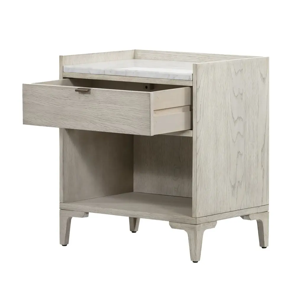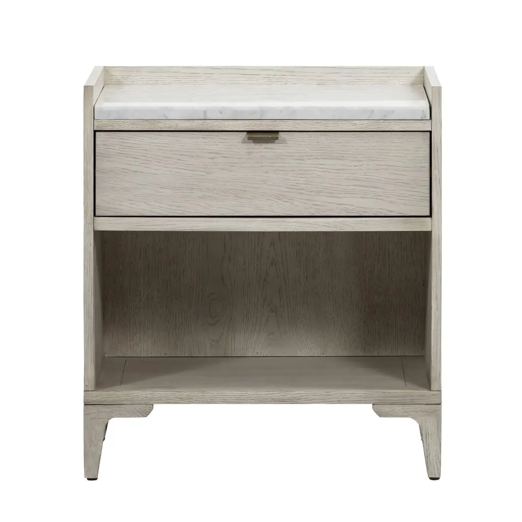 Greer 1-drawer Nightstand, Vintage White Oak/white Marble