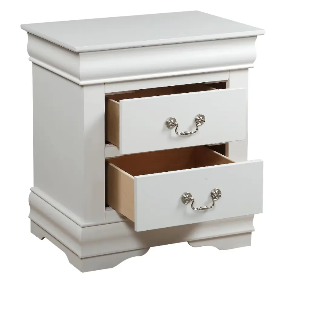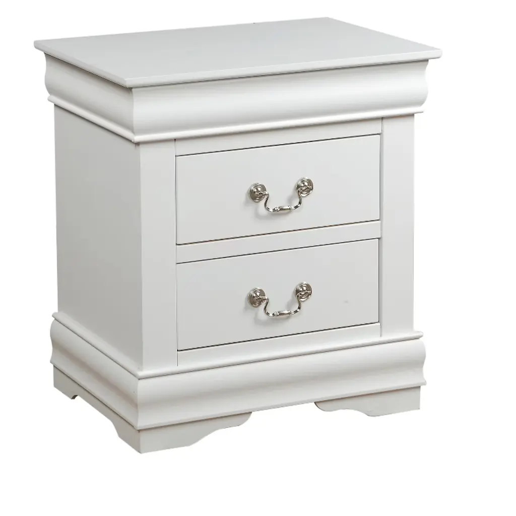 Gulches 24 Inch Tall White Nightstand, 2 Drawers, All Featuring Brushed Handles