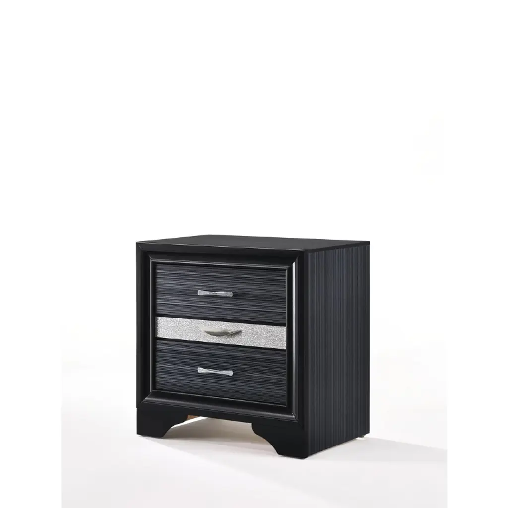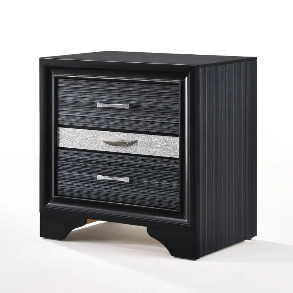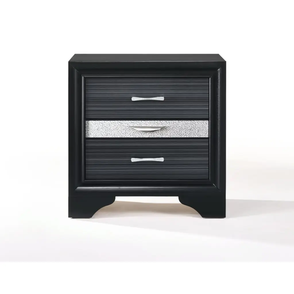 This 26-inch tall nightstand in a classic black finish offers three spacious drawers, providing ample storage for your bedroom essentials. Its sleek design and sturdy construction make it a versatile and stylish addition to any bedroom setting.