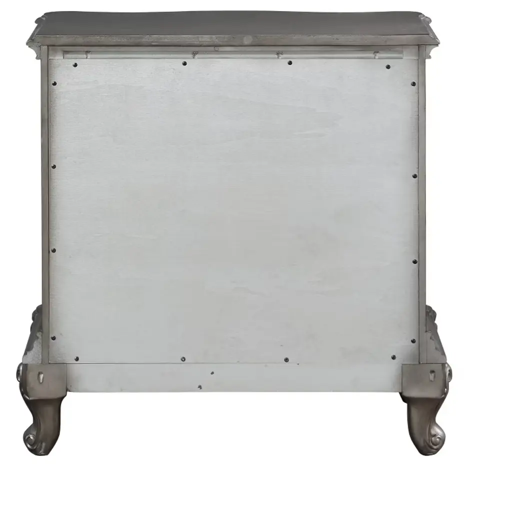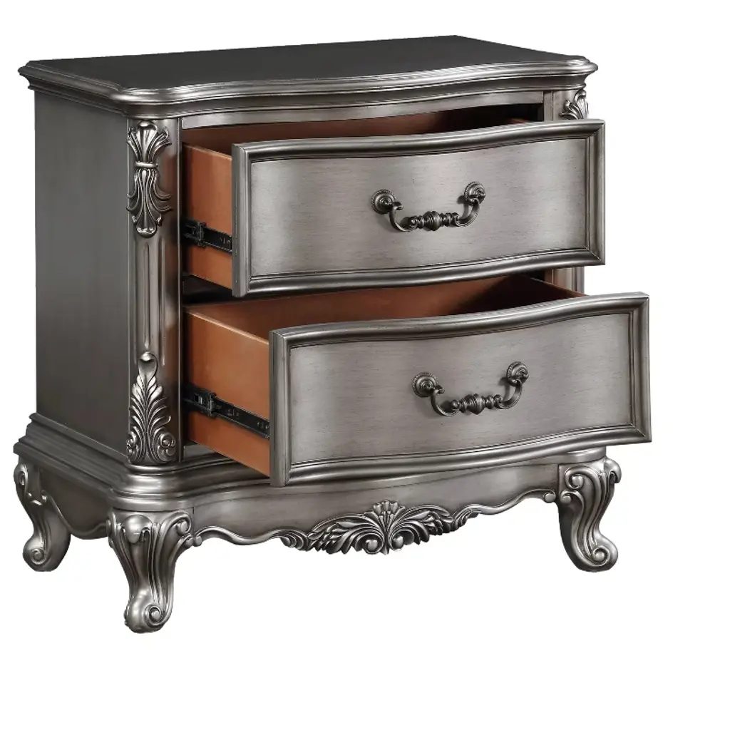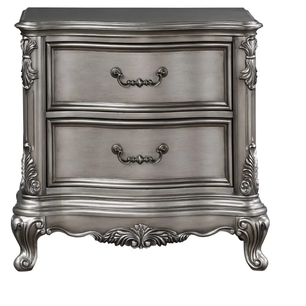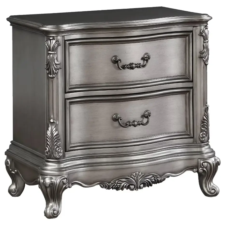 Gulches Nightstand 30 Inches High Shiny Gray Retro Design 2 Drawers Wooden Legs