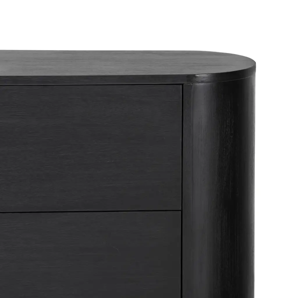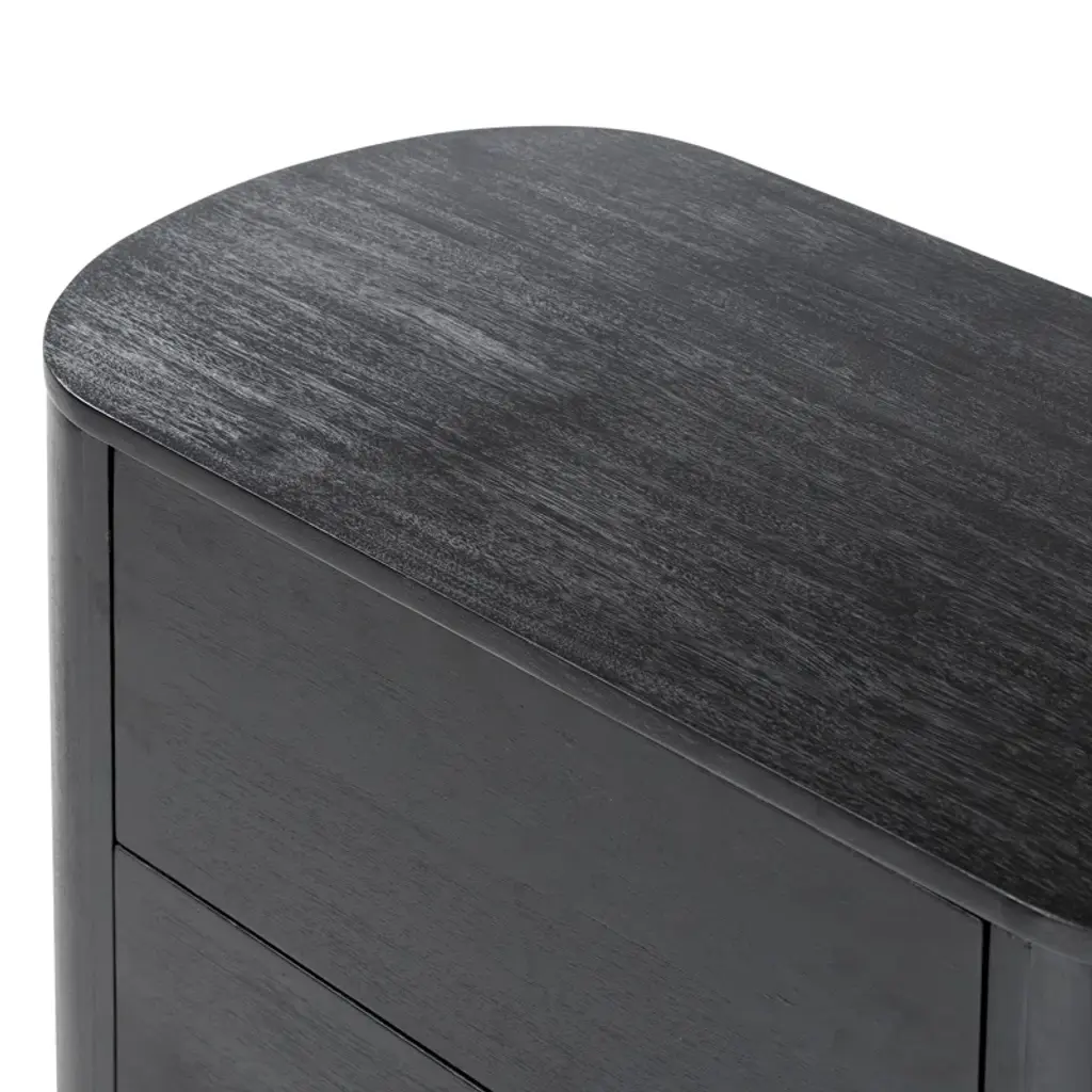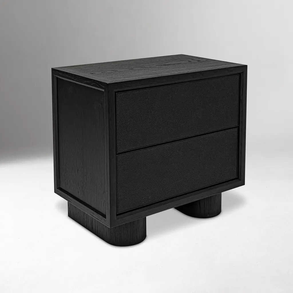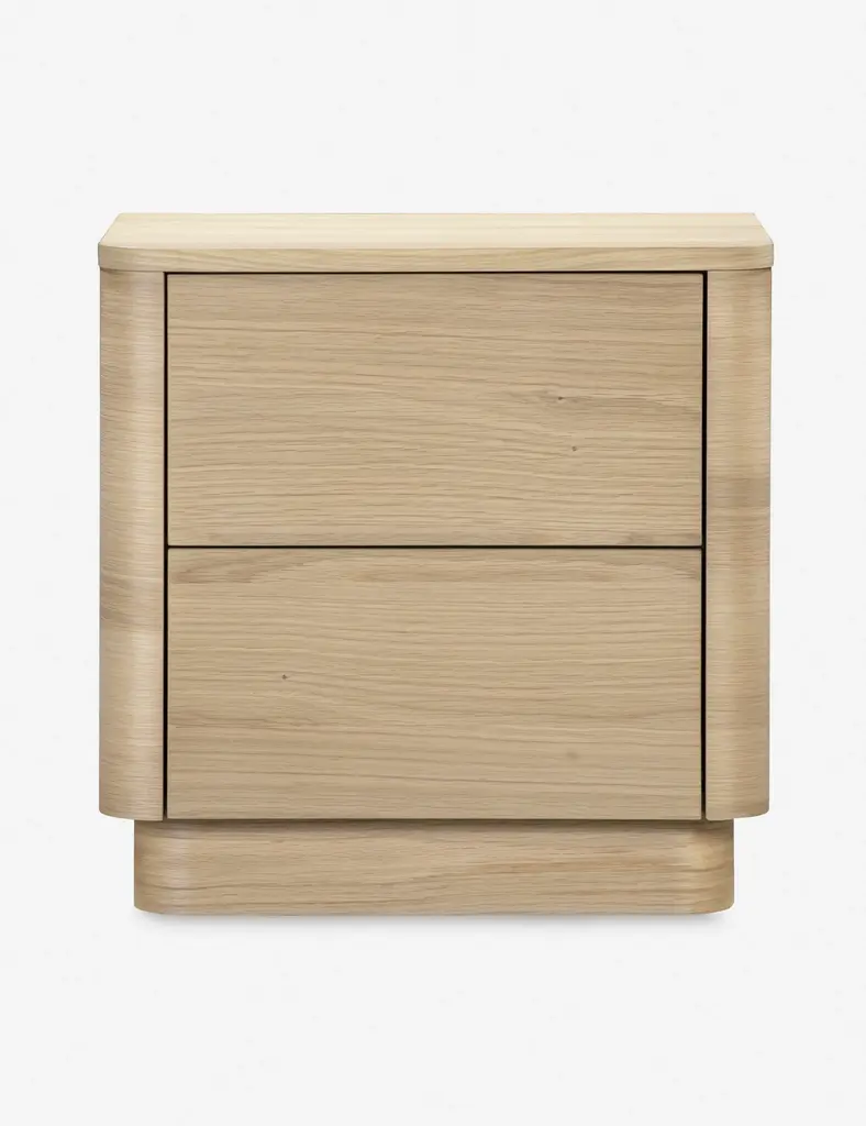 Complete your bedroom update with this nightstand, a versatile piece that helps to build your signature style. It's crafted from acacia wood with a seasoned black finish that offers a timeless, neutral accent. The curved pedestal base and rounded edges create a graceful silhouette, while two spacious drawers provide ample storage for your nightly essentials. Consider a pair for either side of your bed for a cohesive look.