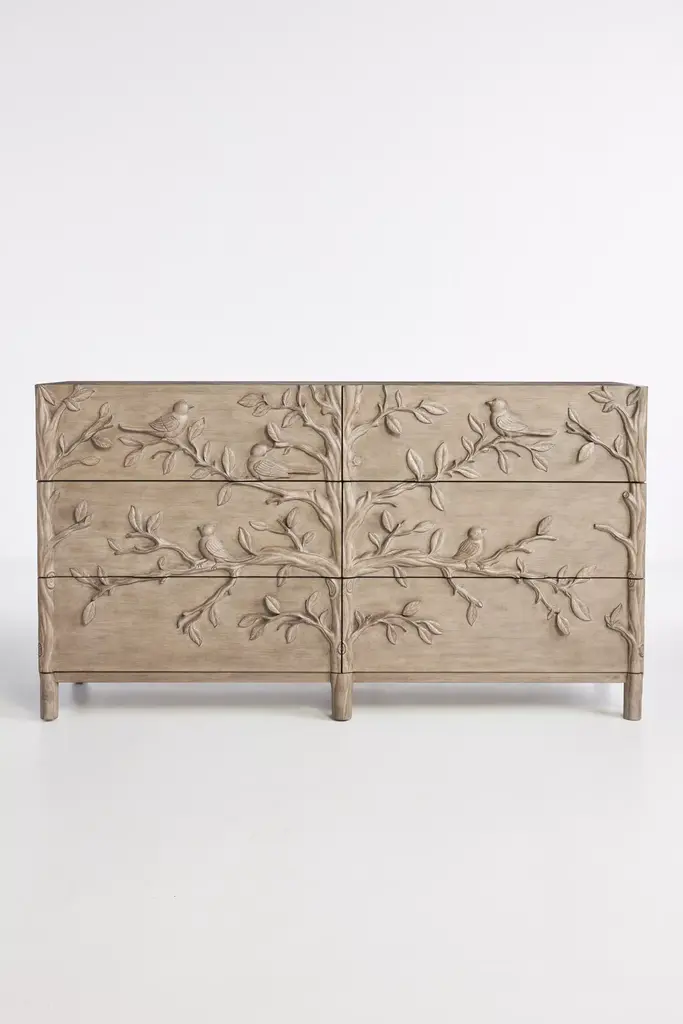 Depicting a serene treetop scene, this handcarved dresser is a showstopping work of art inspired by classic, romantic design. Fans of this Ornithology series rave about its easy-glide drawers, classic heirloom qualities, and exquisite craftsmanship, making it the perfect statement piece (or set!) for a woodsy and whimsical oasis. For ordering assistance and more, please [contact us](https://www.anthropologie.com/help/contact-us#contact-us-section-2). For aesthetic advice and tips to help decorate your space, enjoy our complimentary [home styling services](https://www.anthropologie.com/help/personal-styling-home-decor). For more information on the materials and techniques of this piece, [click here](https://www.anthropologie.com/help/material-care-guide).